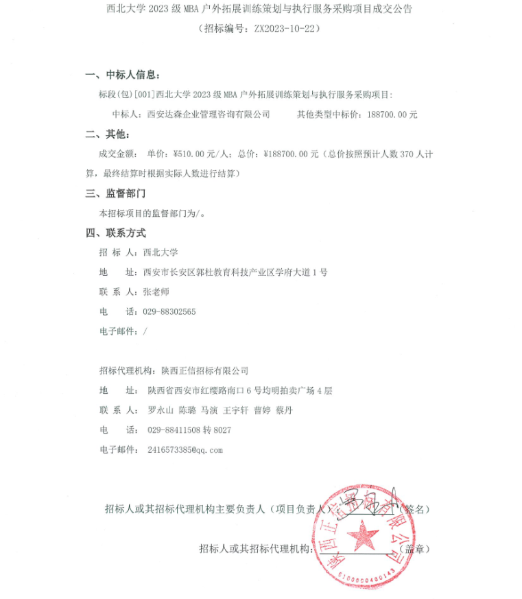 开云手机网页版登录入口2023级MBA户外拓展训练策划与执行服务采购项目成交公告