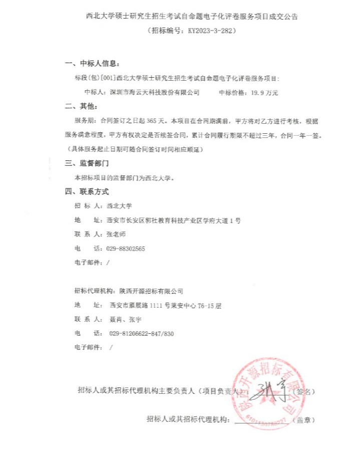 开云手机网页版登录入口硕士研究生招生考试自命题电子化评卷服务项目成交公告