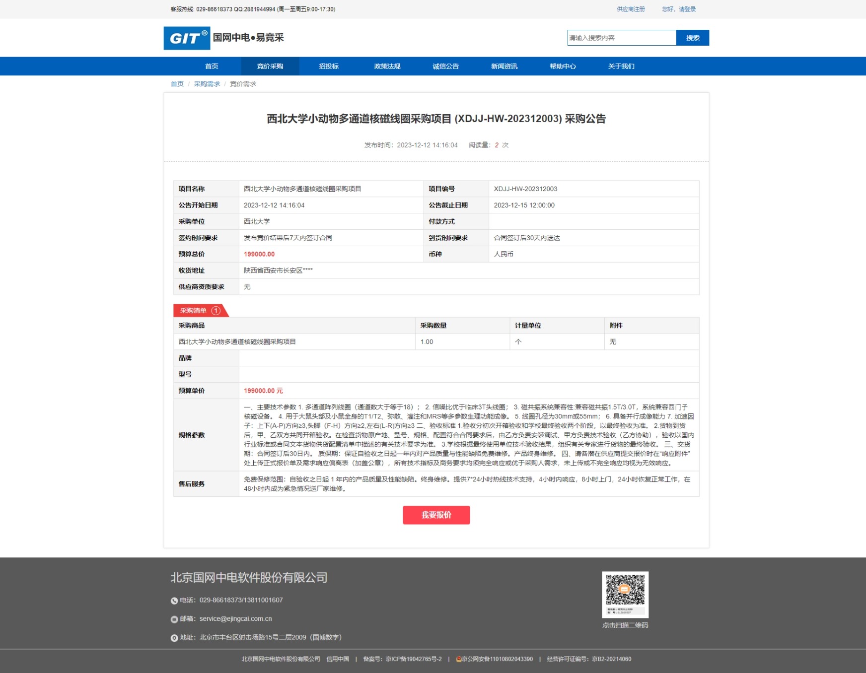 开云手机网页版登录入口小动物多通道核磁线圈采购项目 (XDJJ-HW-202312003) 采购公告 作者: 编辑: 时间:2023-12-12 原公告链接:https://www.ejingcai.com.cn/site/bidding/detail/7761