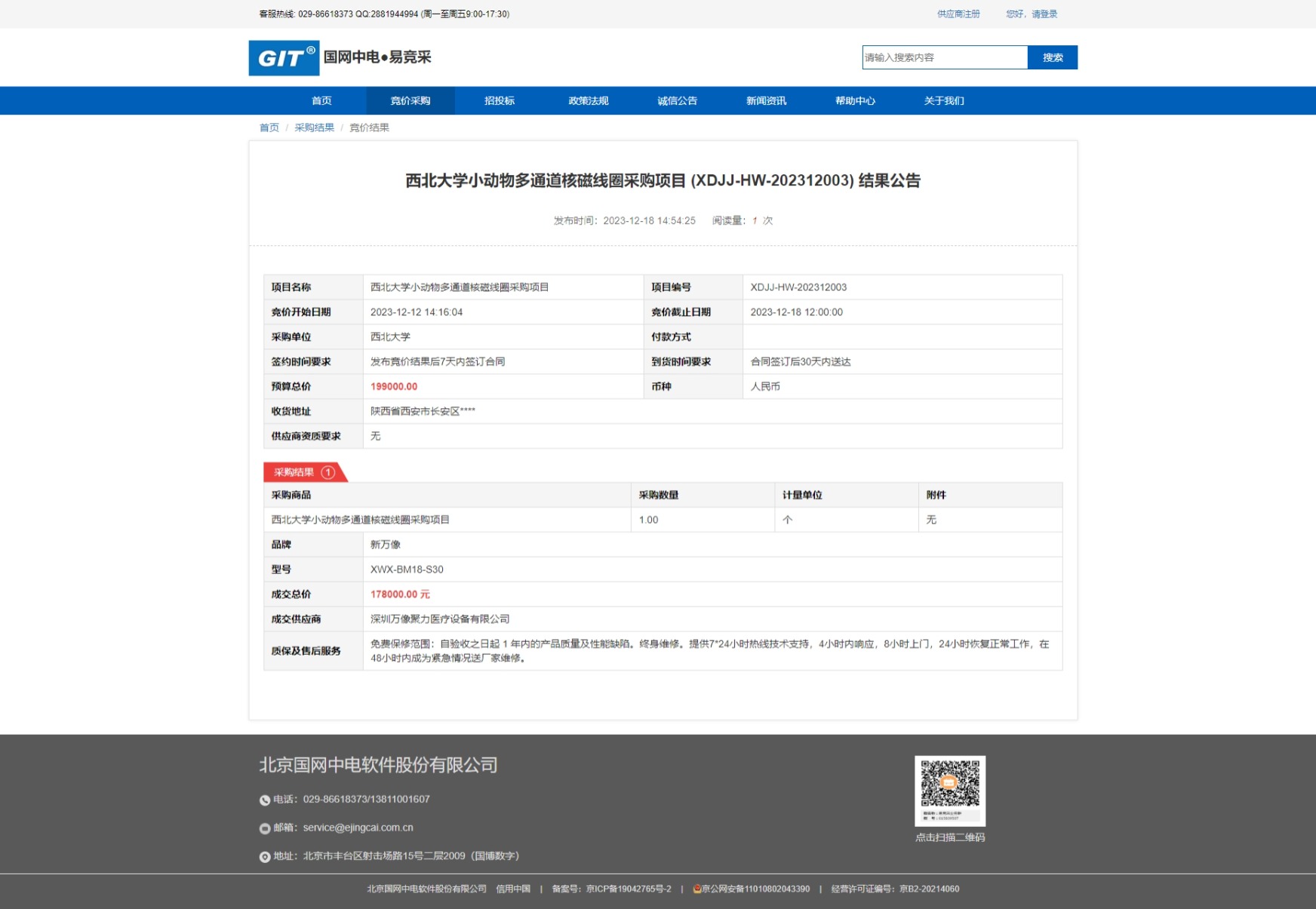 开云手机网页版登录入口小动物多通道核磁线圈采购项目 (XDJJ-HW-202312003) 结果公告 作者: 编辑:采购与招标办公室 时间:2023-12-18 原公告链接:https://www.ejingcai.com.cn/site/bidding/detail/7904