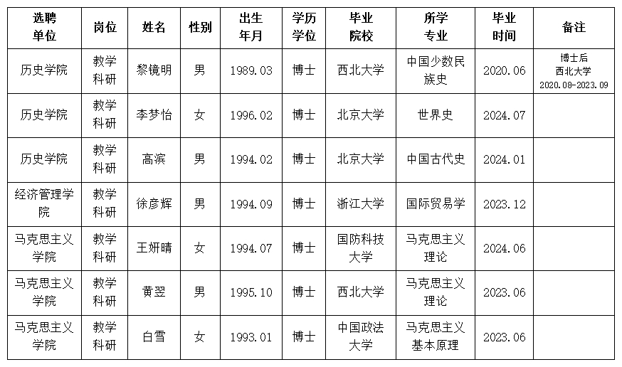 经用人单位推荐,人力资源部审查,学校教学督导及院系相关专家考核,开云手机网页版登录入口拟确定下列人员来校工作。本着公平、公正、公开的原则,现将本次拟选聘人员基本情况公示如下: