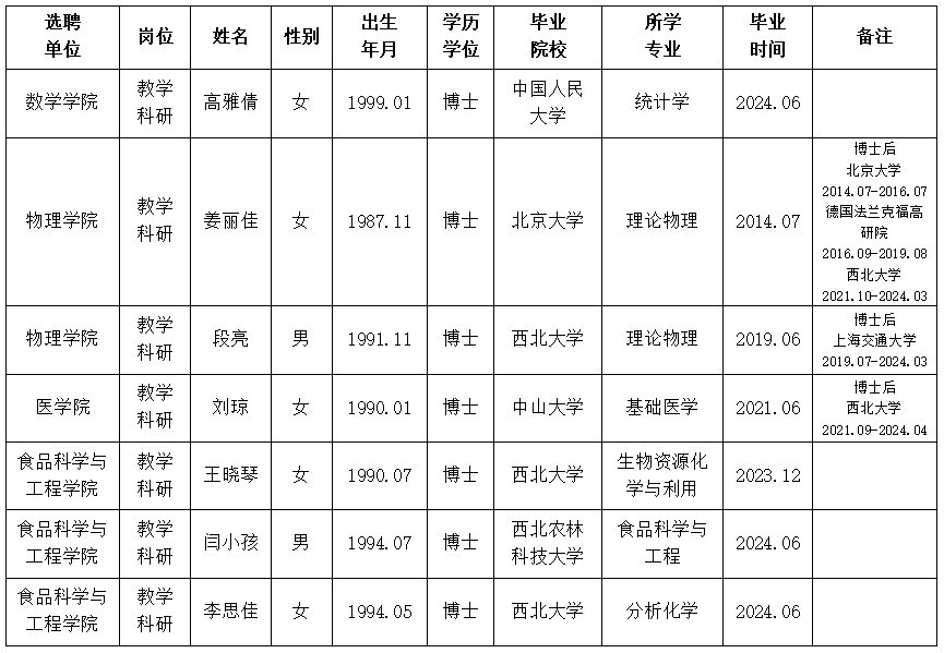 经用人单位推荐,人力资源部审查,学校教学督导及院系相关专家考核,开云手机网页版登录入口拟确定下列人员来校工作。本着公平、公正、公开的原则,现将本次拟选聘人员基本情况公示如下: