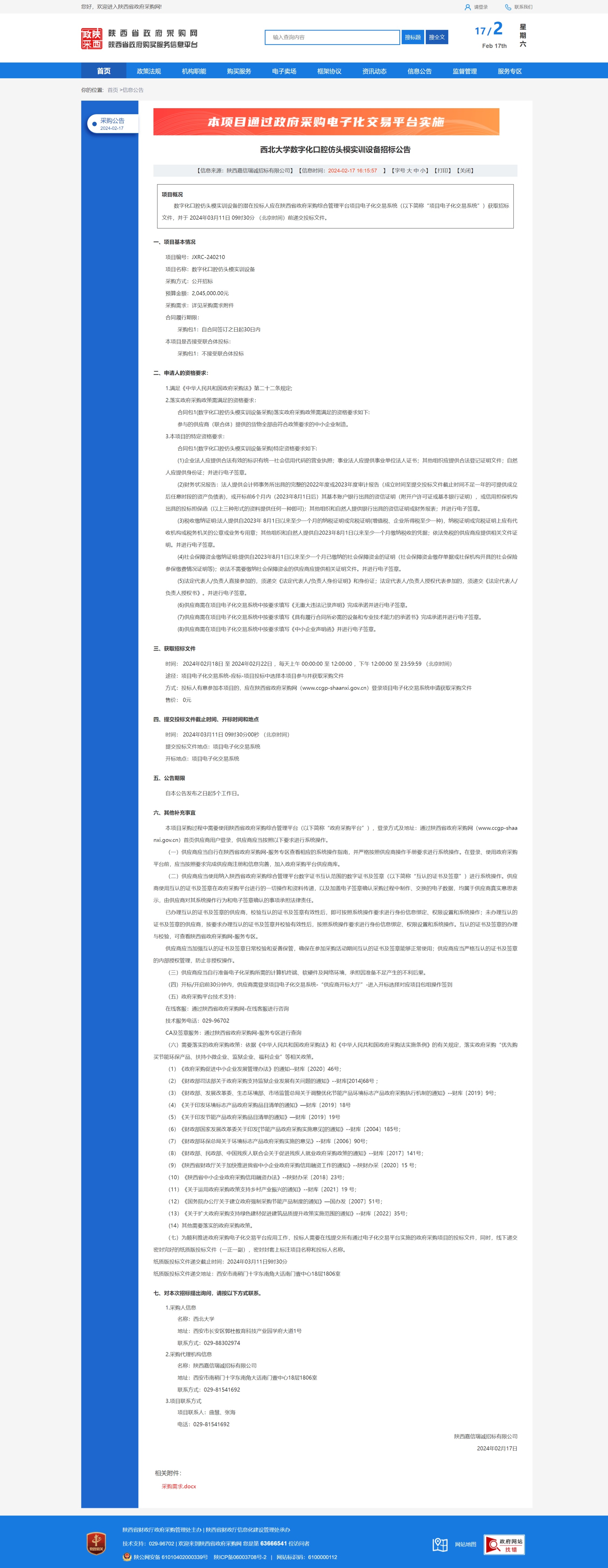 开云手机网页版登录入口数字化口腔仿头模实训设备招标公告 作者: 编辑:采购与招标办公室 时间:2024-02-17 原公告链接:https://www.ccgp-shaanxi.gov.cn/freecms/site/shaanxi/ggxx/info/2024/8a69c2e88d644a30018db25eab9c40be.html?noticeType=001011¬iceId=d8d8c715-cd6d-11ee-b8b6-08c0eb20c666