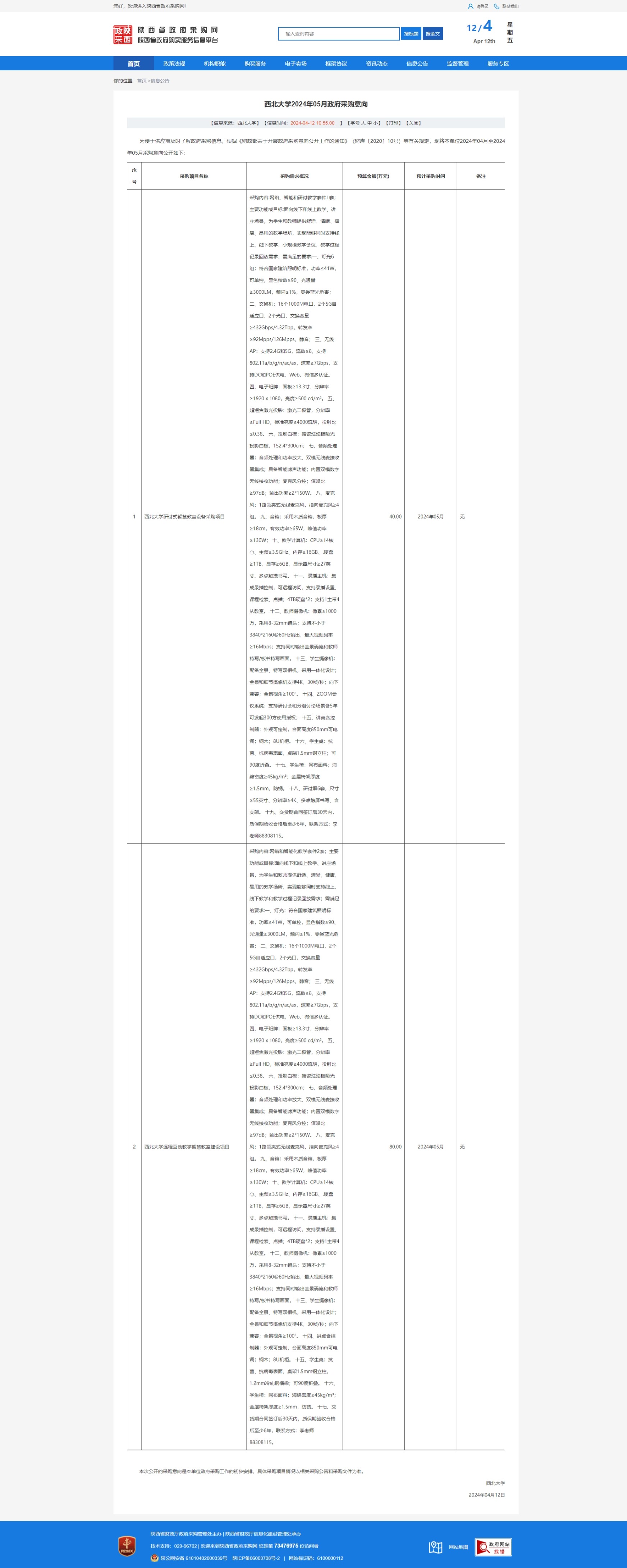 开云手机网页版登录入口2024年05月政府采购意向 作者: 编辑:采购与招标办公室 时间:2024-04-12 原公告链接:https://www.ccgp-shaanxi.gov.cn/freecms/site/shaanxi/ggxx/info/2024/8a69c67a8ebac77d018ed0101b371004.html?noticeType=59¬iceId=3ac65597-f879-11ee-b8b6-08c0eb20c666