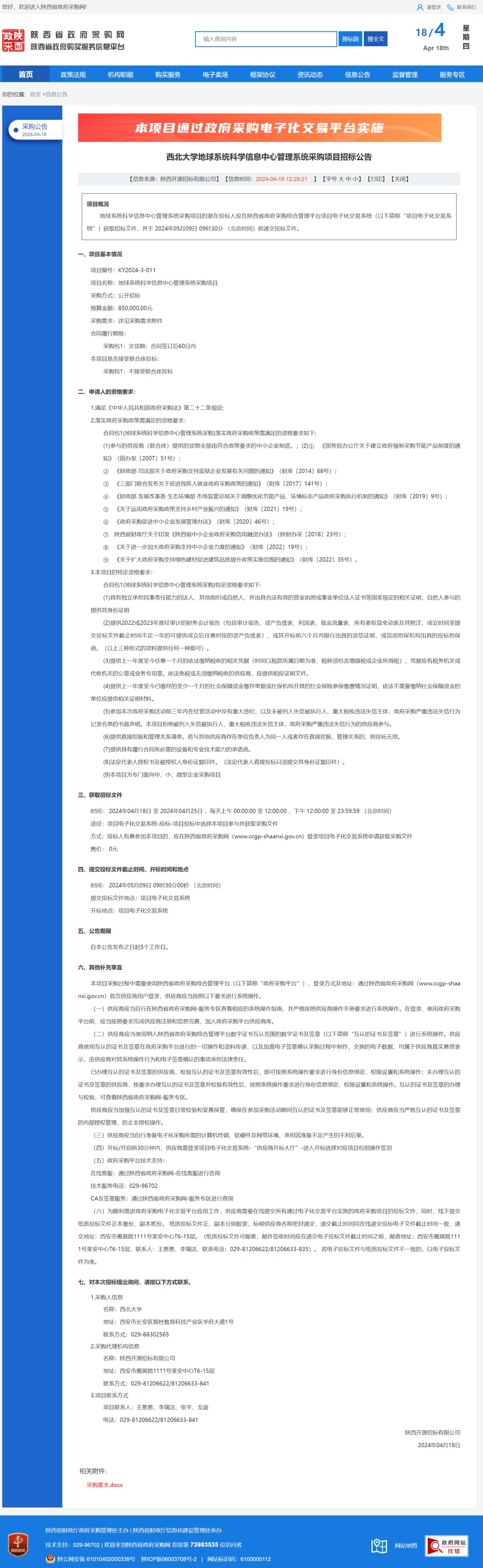 开云手机网页版登录入口地球系统科学信息中心管理系统采购项目招标公告