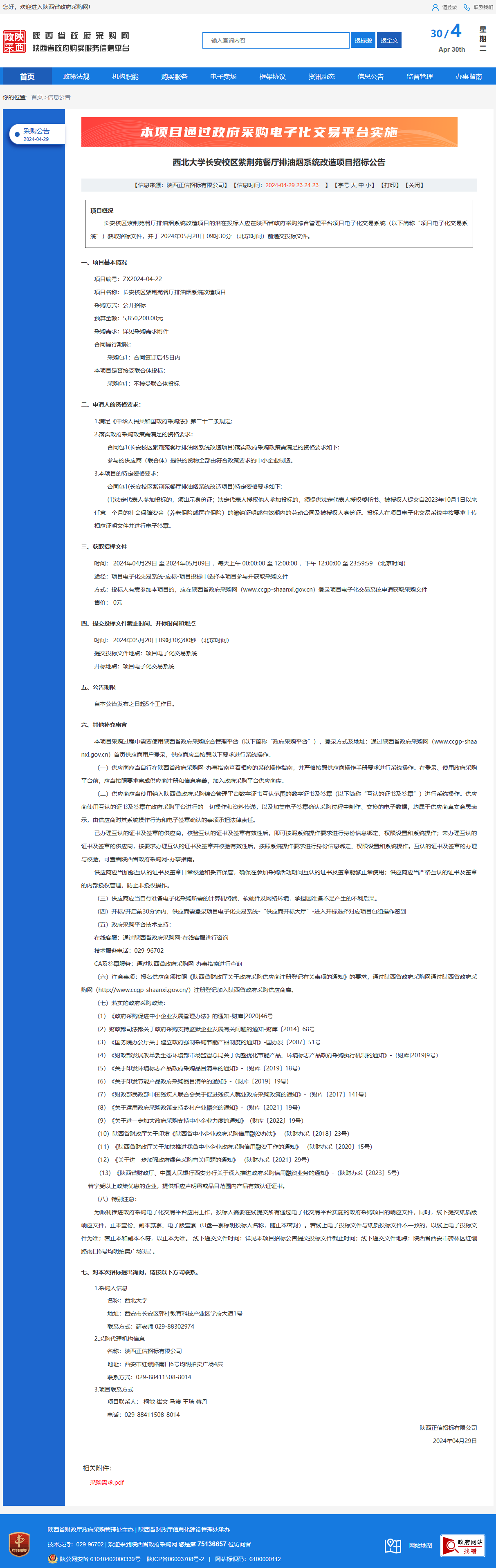 开云手机网页版登录入口长安校区紫荆苑餐厅排油烟系统改造项目招标公告