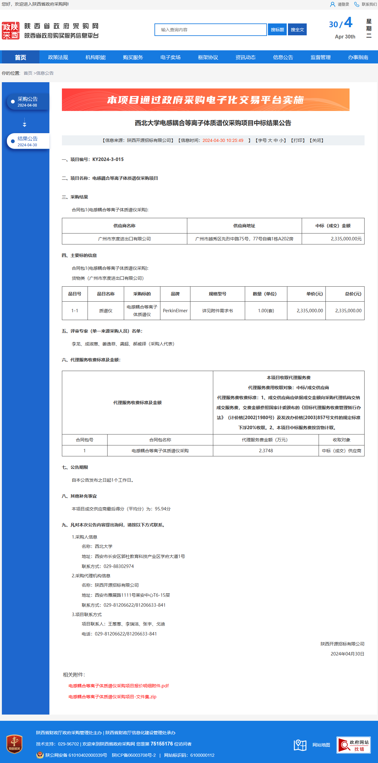 开云手机网页版登录入口电感耦合等离子体质谱仪采购项目中标结果公告