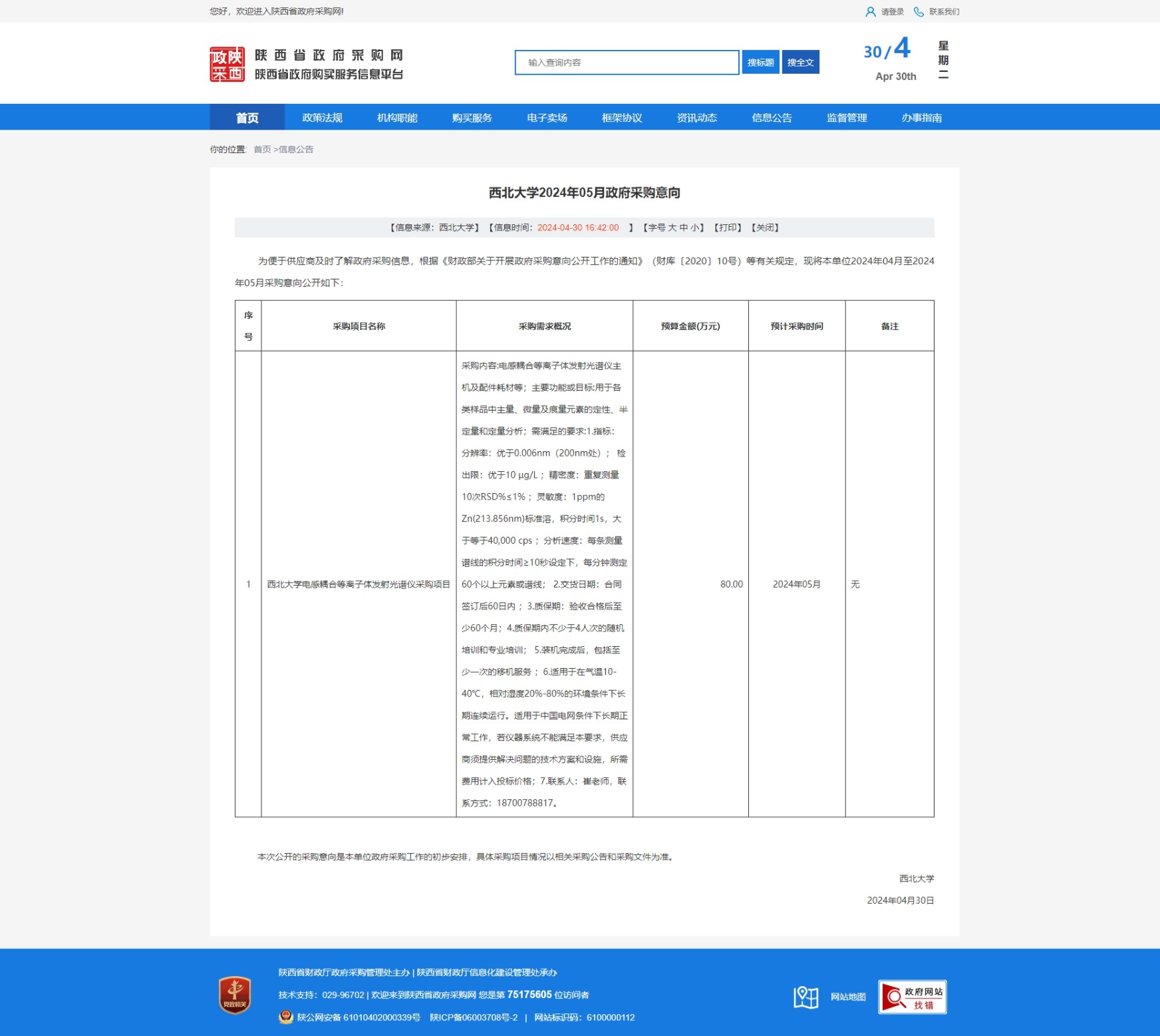 开云手机网页版登录入口2024年05月政府采购意向 作者: 编辑:采购与招标办公室 时间:2024-04-30 原公告链接:https://www.ccgp-shaanxi.gov.cn/freecms/site/shaanxi/ggxx/info/2024/8a69c2f18f23d42a018f2e26ba787387.html?noticeType=59¬iceId=c2550b64-06ce-11ef-b8b6-08c0eb20c666