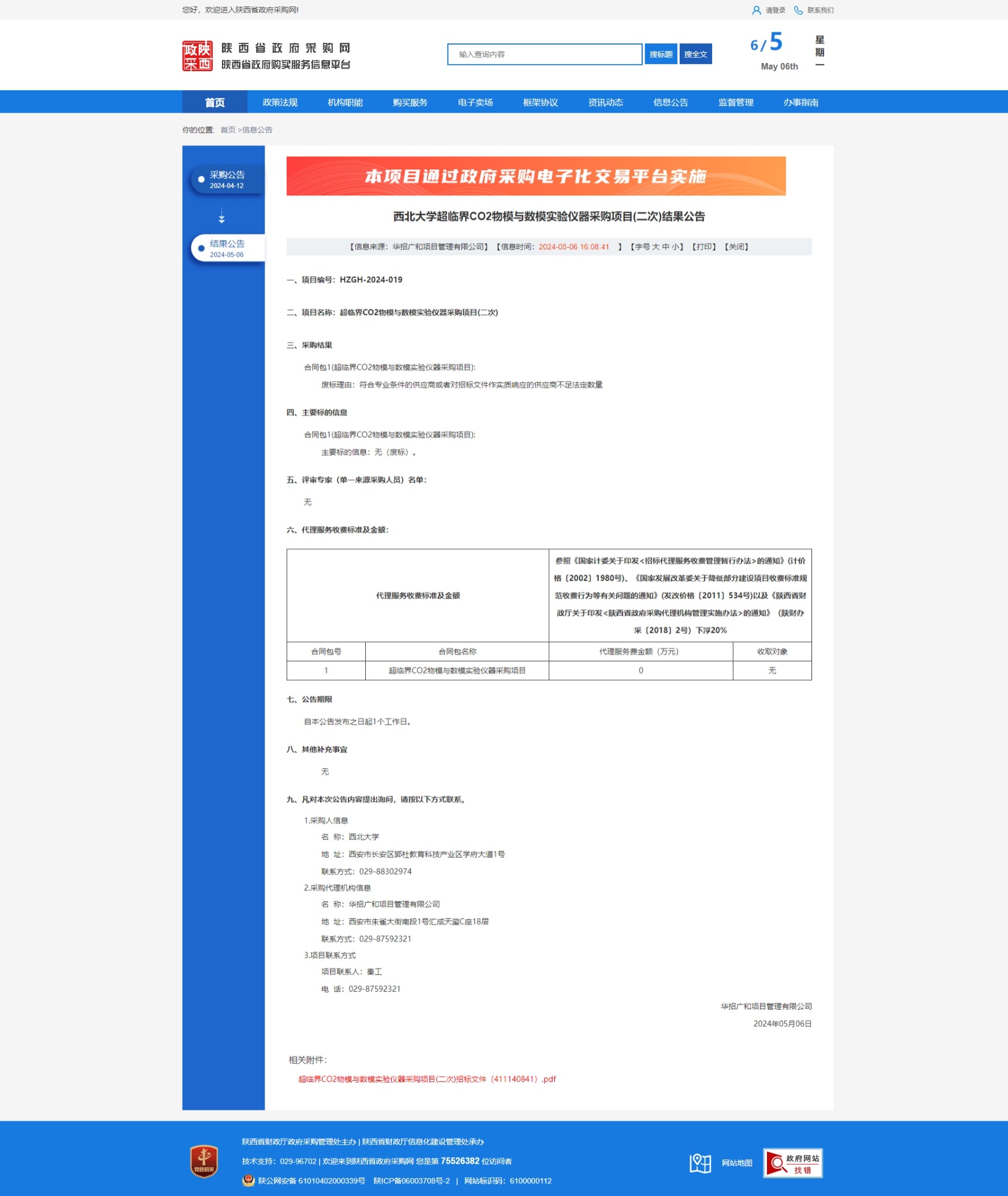 开云手机网页版登录入口超临界CO2物模与数模实验仪器采购项目(二次)结果公告 作者: 编辑:采购与招标办公室 时间:2024-05-06 原公告链接:https://www.ccgp-shaanxi.gov.cn/freecms/site/shaanxi/ggxx/info/2024/8a69c7f58e463d37018f4be929f13bcc.html?noticeType=001006¬iceId=82f86605-0b81-11ef-b8b6-08c0eb20c666