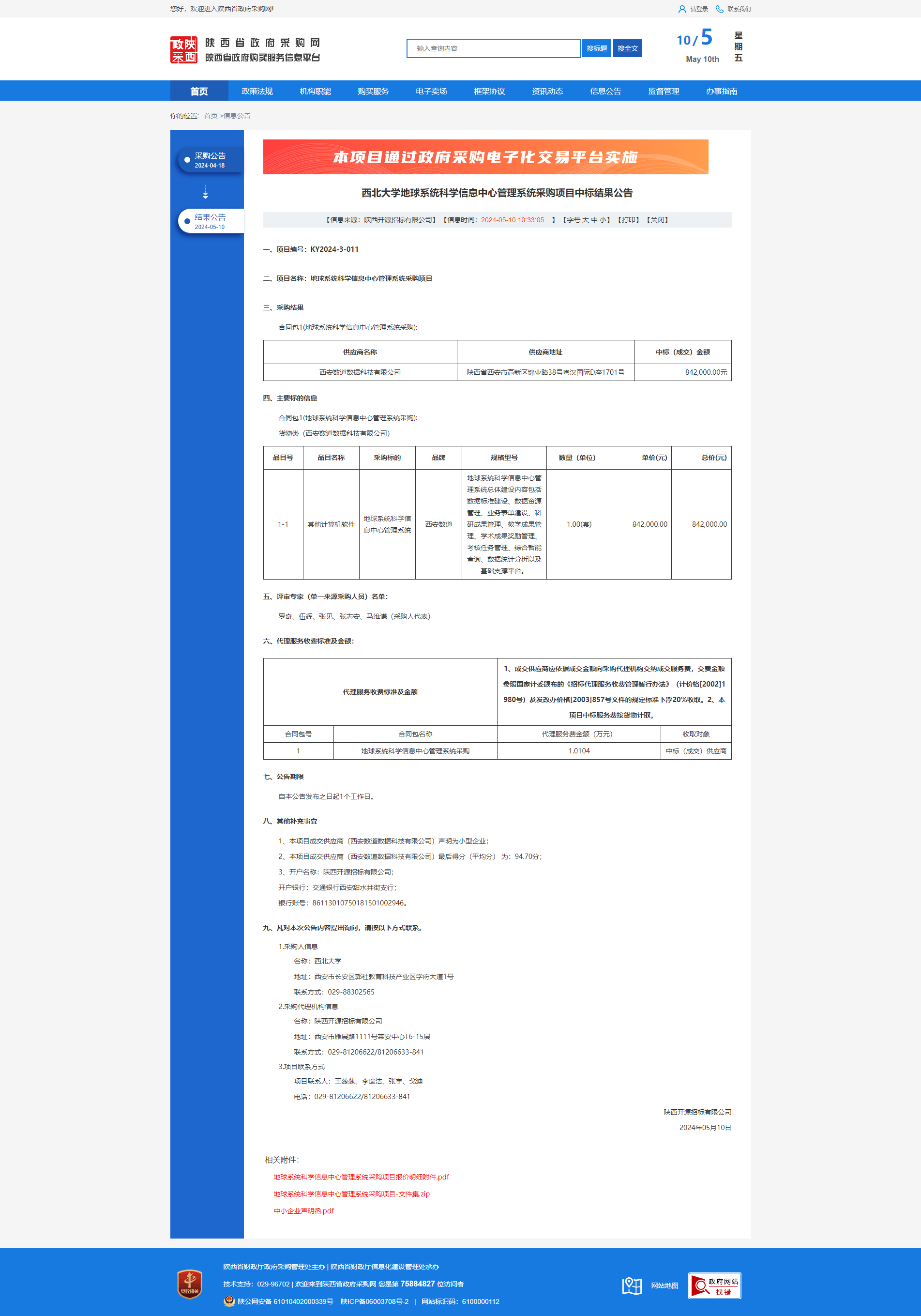 开云手机网页版登录入口地球系统科学信息中心管理系统采购项目中标结果公告