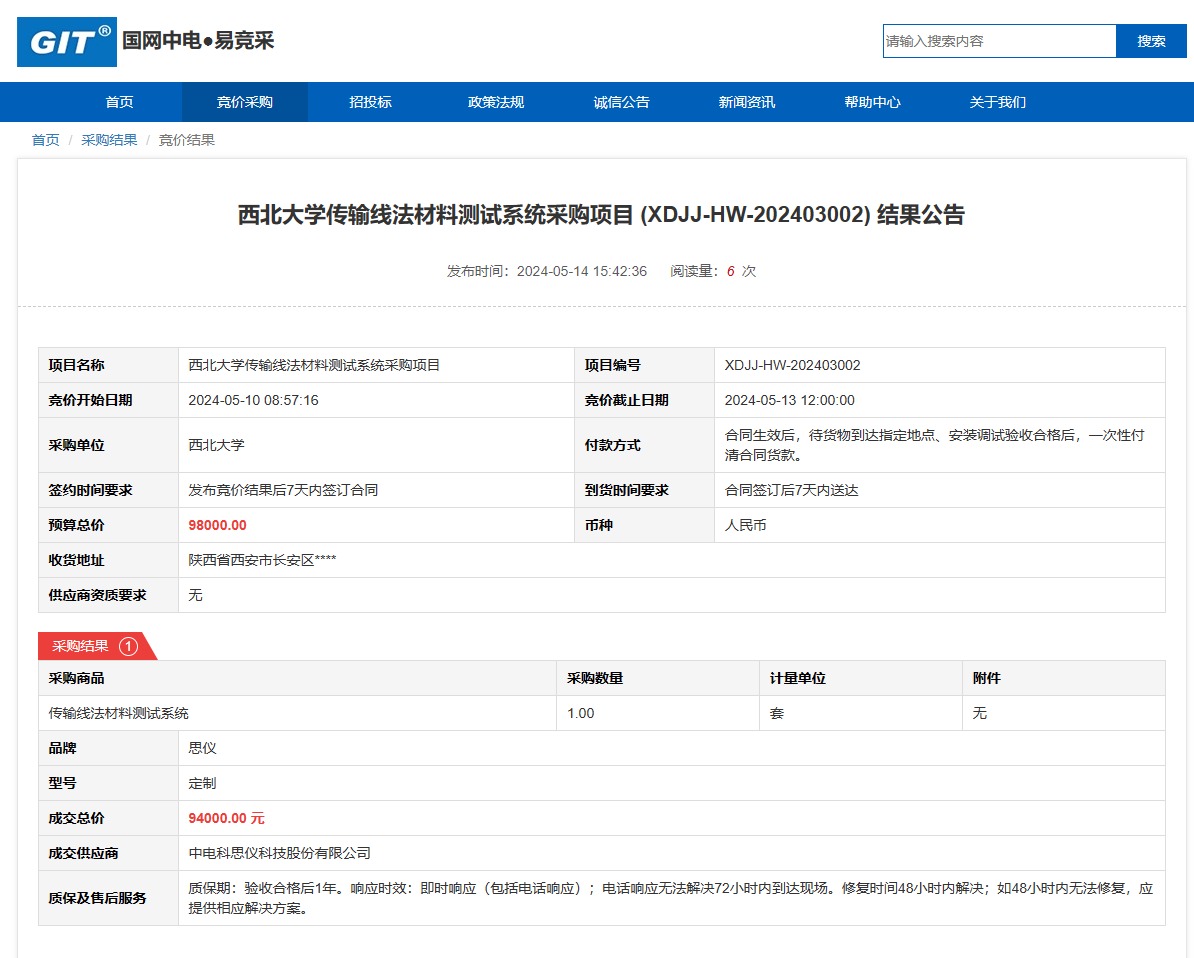 开云手机网页版登录入口传输线法材料测试系统采购项目 (XDJJ-HW-202403002) 竞价结果公告 作者: 编辑: 时间:2024-05-14 原公告链接:https://www.ejingcai.com.cn/site/bidding/detail/10184