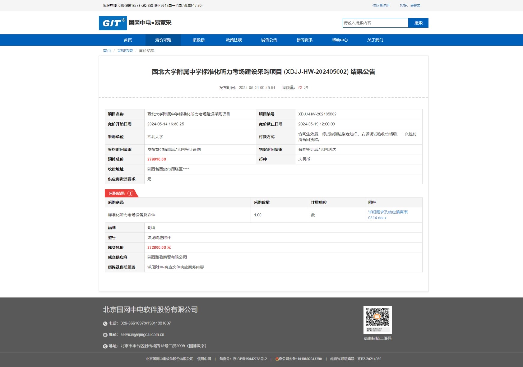 开云手机网页版登录入口附属中学标准化听力考场建设采购项目 (XDJJ-HW-202405002)竞价 结果公告 作者: 编辑:采购与招标办公室 时间:2024-05-21 原公告链接:https://www.ejingcai.com.cn/site/bidding/detail/10341