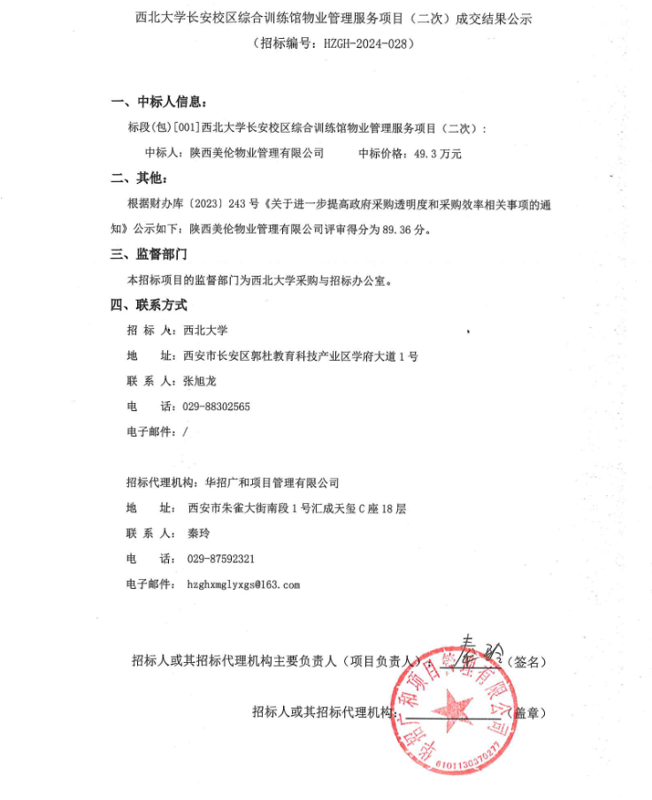 开云手机网页版登录入口长安校区综合训练馆物业管理服务项目(二次)成交结果公示