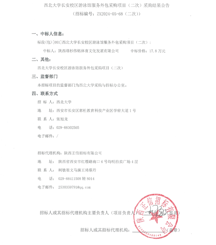 开云手机网页版登录入口长安校区游泳馆服务外包采购项目(二次)采购结果公告