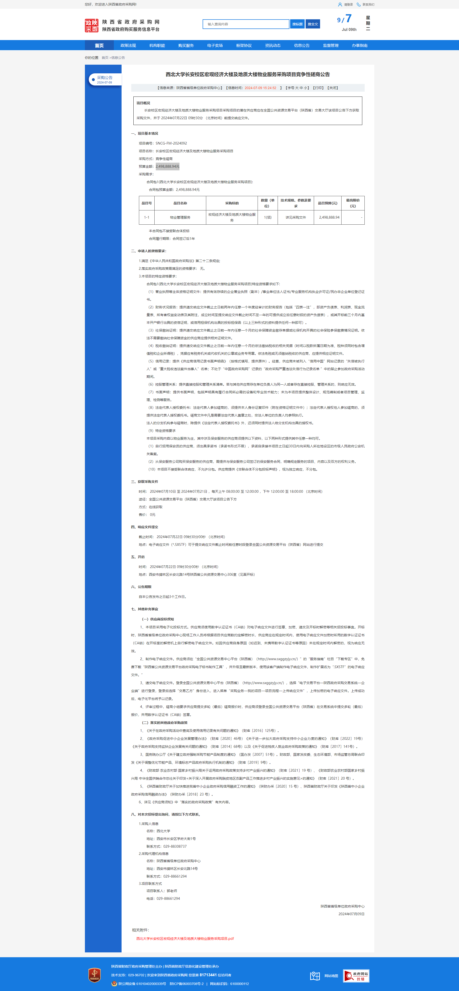 开云手机网页版登录入口长安校区宏观经济大楼及地质大楼物业服务采购项目竞争性磋商公告
