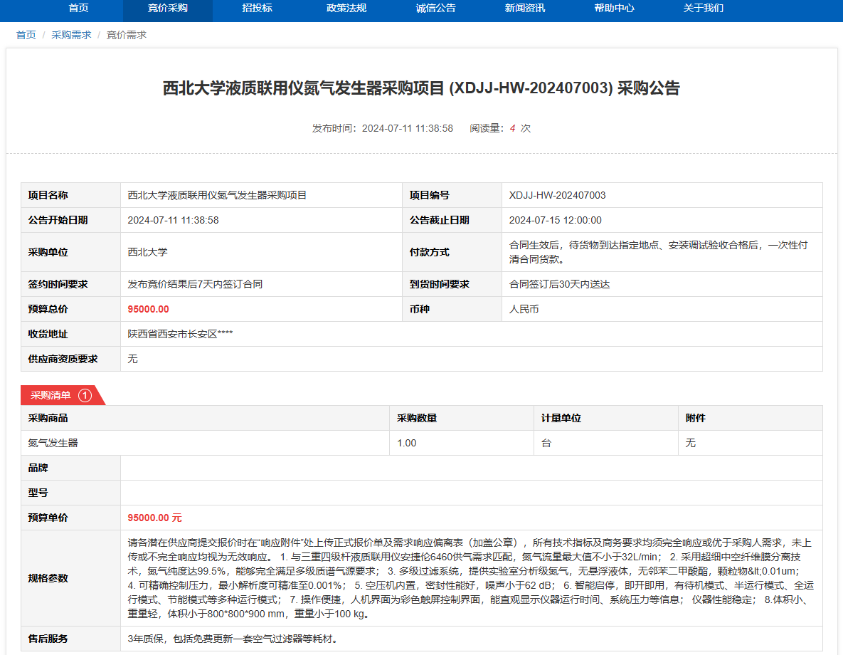 开云手机网页版登录入口液质联用仪氮气发生器采购项目 (XDJJ-HW-202407003) 竞价采购公告 作者: 编辑: 时间:2024-07-11 原公告链接:https://www.ejingcai.com.cn/site/bidding/detail/11611