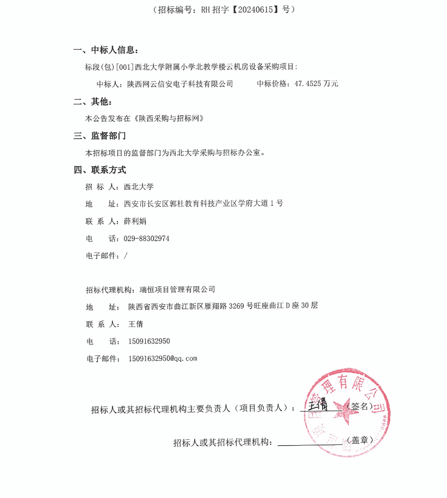 开云手机网页版登录入口附属小学北教学楼云机房设备采购项目中标结果公告 作者: 编辑:采购与招标办公室 时间:2024-07-11 原公告链接:http://bulletin.sntba.com/resultBulletin/2024-07-11/1593410.html
