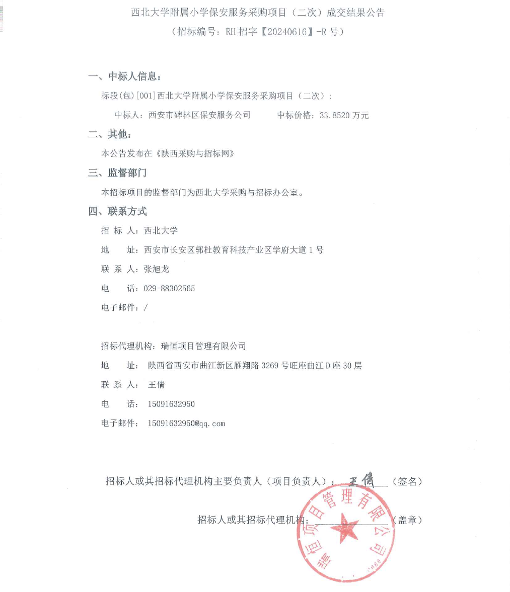 开云手机网页版登录入口附属小学保安服务采购项目(二次)成交结果公告