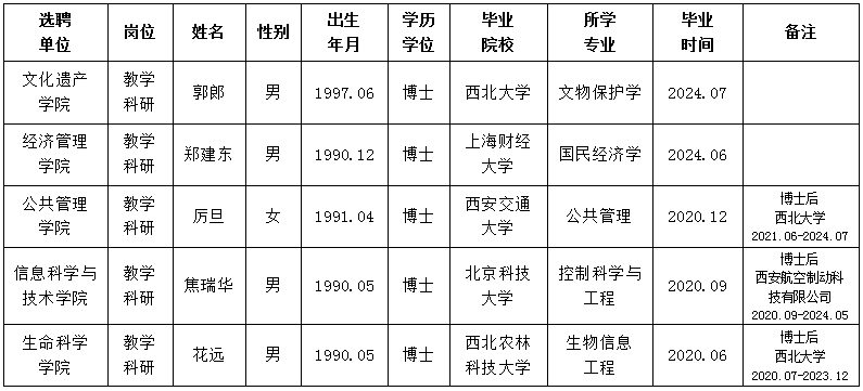 经用人单位推荐,人力资源部审查,学校教学督导及院系相关专家考核,学校专家评审会审议,开云手机网页版登录入口拟确定下列人员来校工作,聘任方式为事业编正常选聘。本着公平、公正、公开的原则,现将本次拟选聘人员基本情况公示如下: