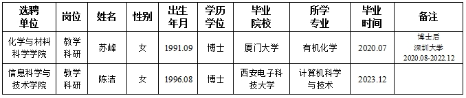 经用人单位推荐,人力资源部审查,学校教学督导及院系相关专家考核,学校专家评审会审议,开云手机网页版登录入口拟确定下列人员来校工作,聘任方式为参编选聘。本着公平、公正、公开的原则,现将本次拟选聘人员基本情况公示如下: