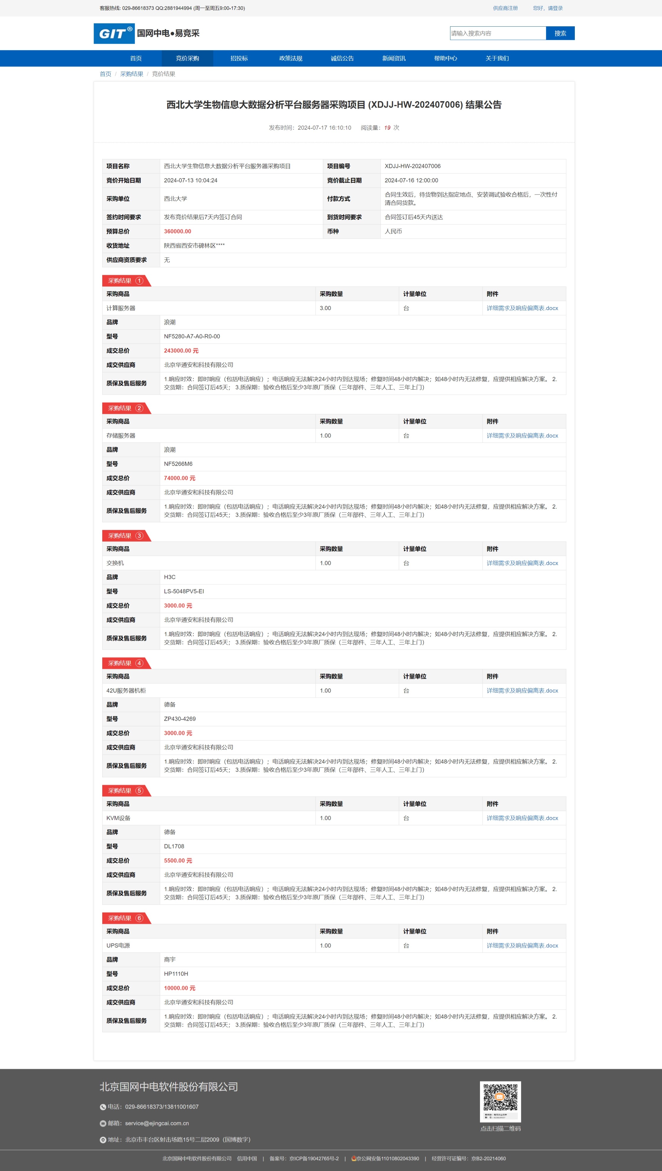 开云手机网页版登录入口生物信息大数据分析平台服务器采购项目 (XDJJ-HW-202407006) 竞价结果公告 作者: 编辑:采购与招标办公室 时间:2024-07-17 原公告链接:https://www.ejingcai.com.cn/site/bidding/detail/11726