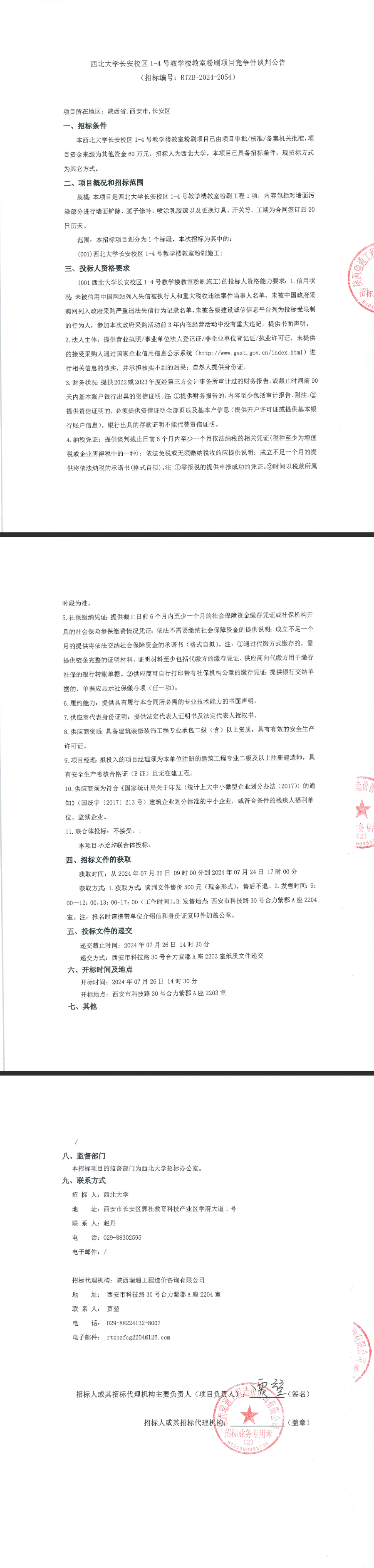 开云手机网页版登录入口长安校区1-4号教学楼教室粉刷项目竞争性谈判公告