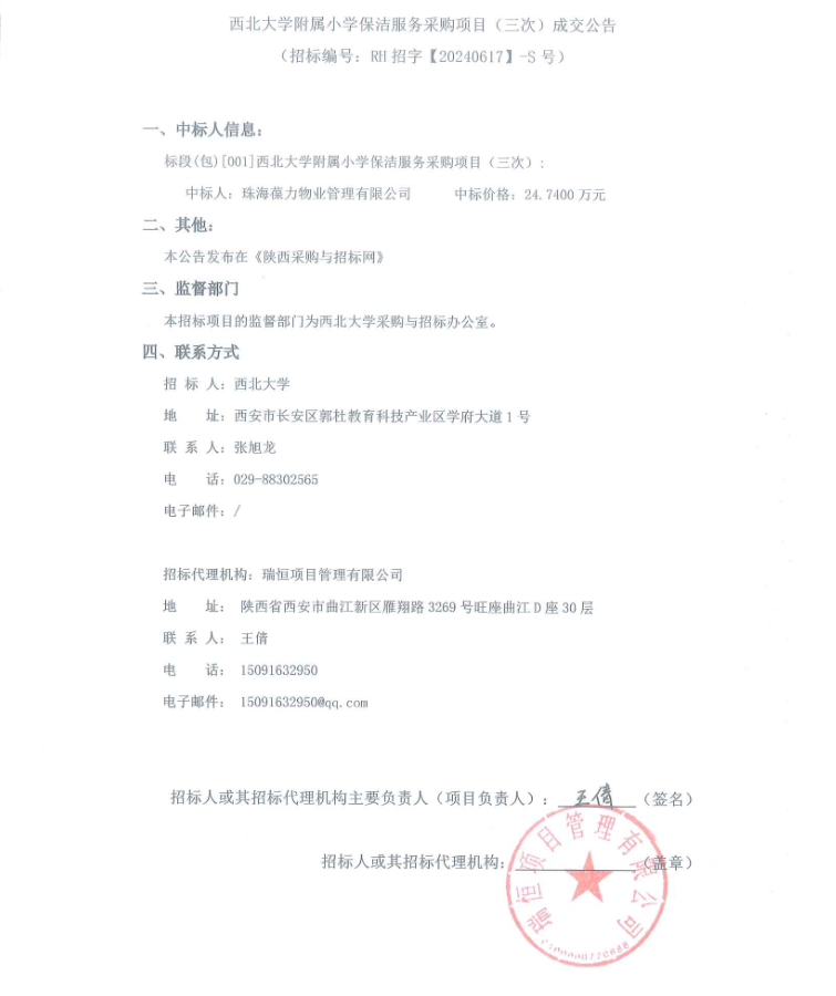 开云手机网页版登录入口附属小学保洁服务采购项目(三次)成交公告