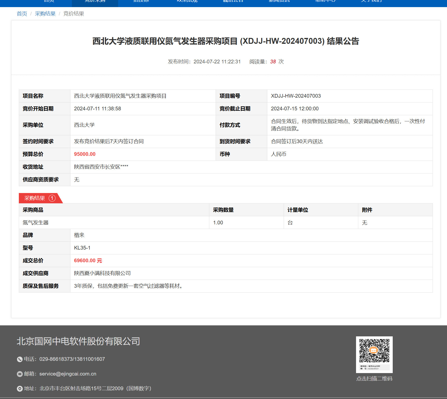 开云手机网页版登录入口液质联用仪氮气发生器采购项目 (XDJJ-HW-202407003) 竞价结果公告 作者: 编辑: 时间:2024-07-23 原公告链接:https://www.ejingcai.com.cn/site/bidding/detail/11793