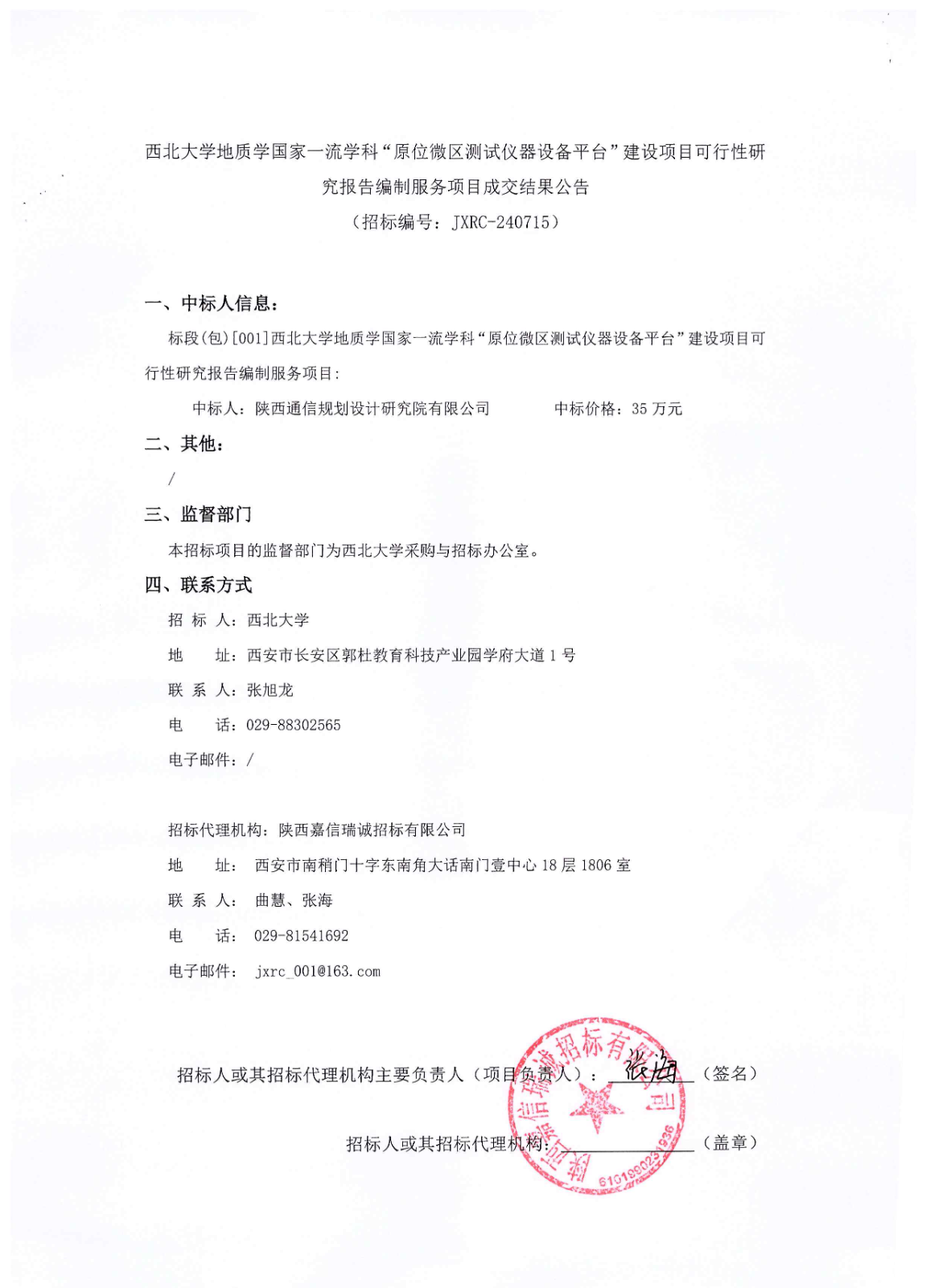 开云手机网页版登录入口地质学国家一流学科“原位微区测试仪器设备平台”建设项目可行性研究报告编制服务项目成交结果公告