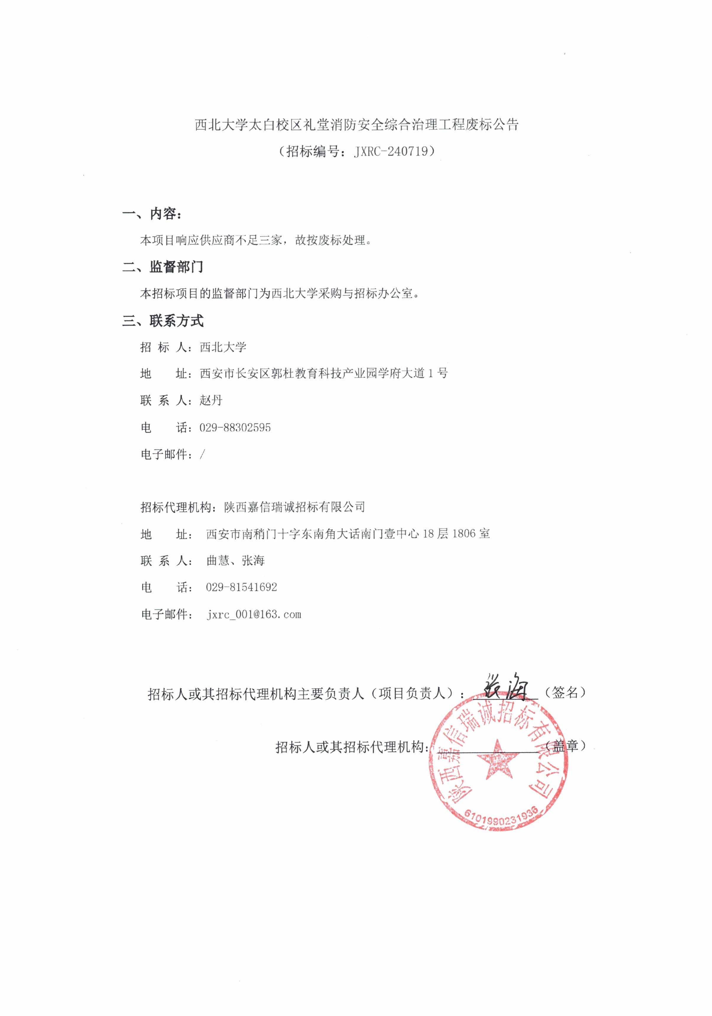 开云手机网页版登录入口太白校区礼堂消防安全综合治理工程废标公告