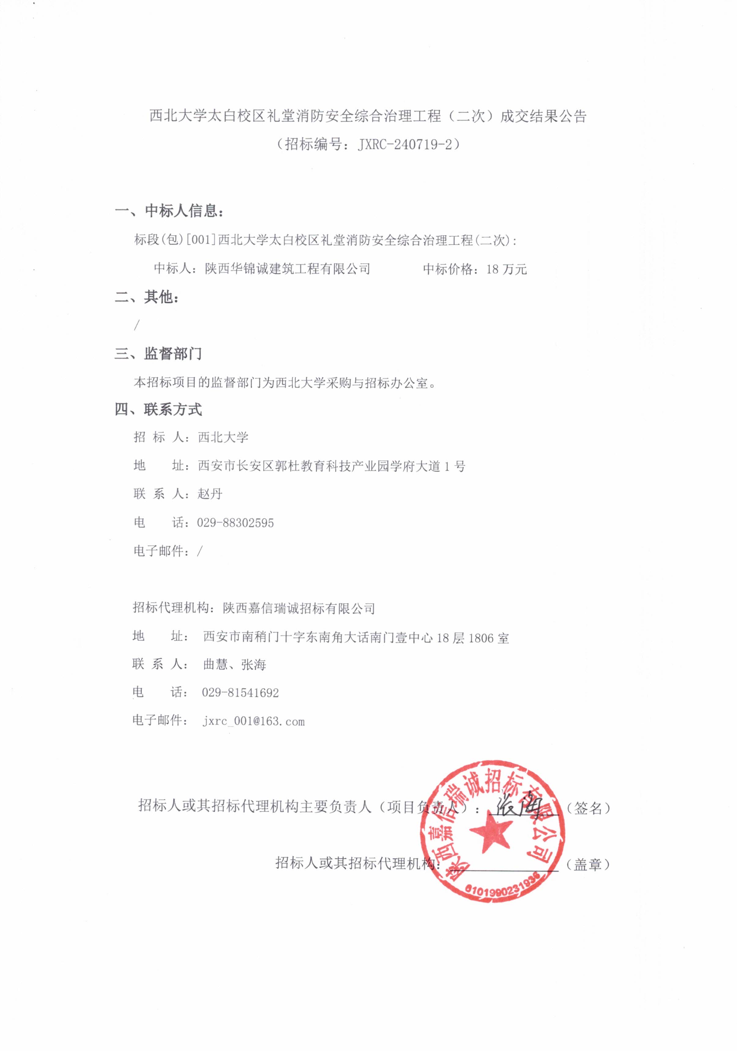 开云手机网页版登录入口太白校区礼堂消防安全综合治理工程(二次)成交结果公告