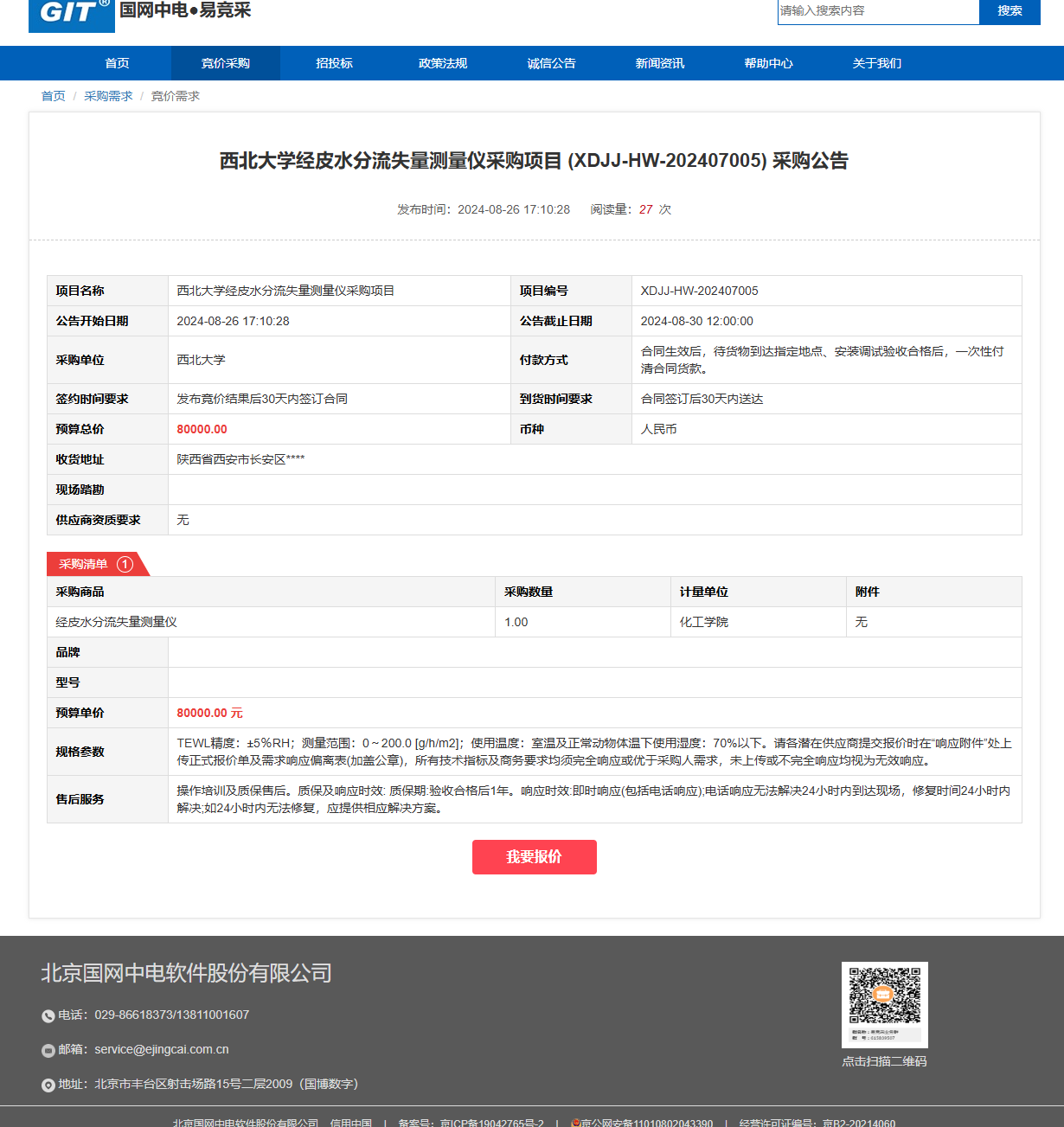 开云手机网页版登录入口经皮水分流失量测量仪采购项目 (XDJJ-HW-202407005) 竞价采购公告 作者: 编辑: 时间:2024-08-27 原公告链接:https://www.ejingcai.com.cn/site/bidding/detail/12213