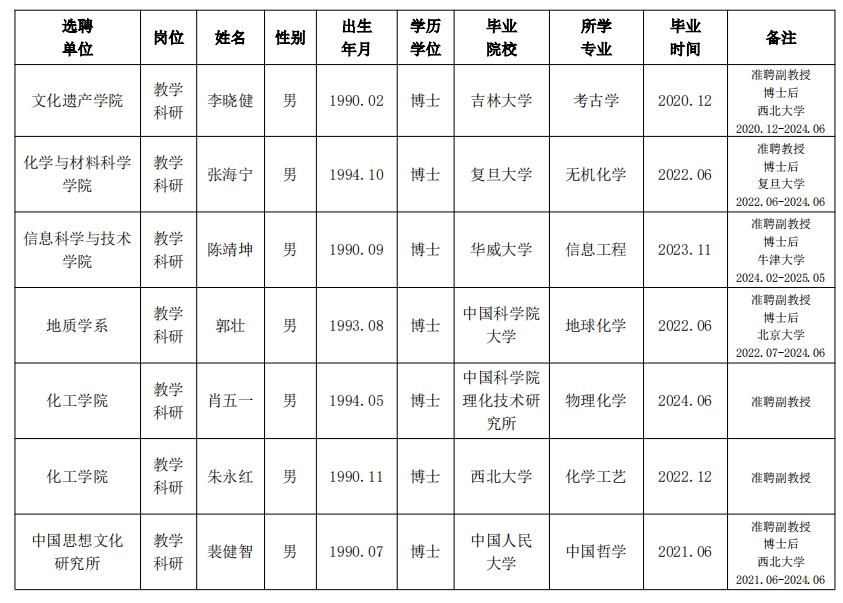 经用人单位推荐,人力资源部审查,学校教学督导及院系相关专家考核,学校教师高级职务特别评审,开云手机网页版登录入口拟确定下列人员来校工作,聘任方式为事业编特别选聘。本着公平、公正、公开的原则,现将本次拟选聘人员基本情况公示如下: