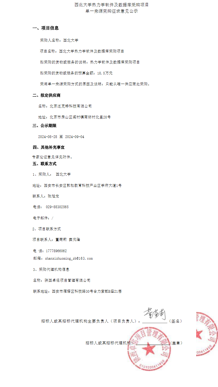 开云手机网页版登录入口热力学软件及数据库采购项目单一来源采购征求意见公示
