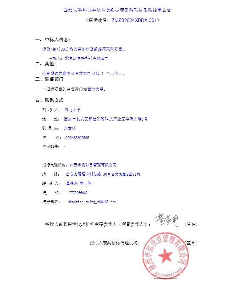 开云手机网页版登录入口热力学软件及数据库采购项目采购结果公告