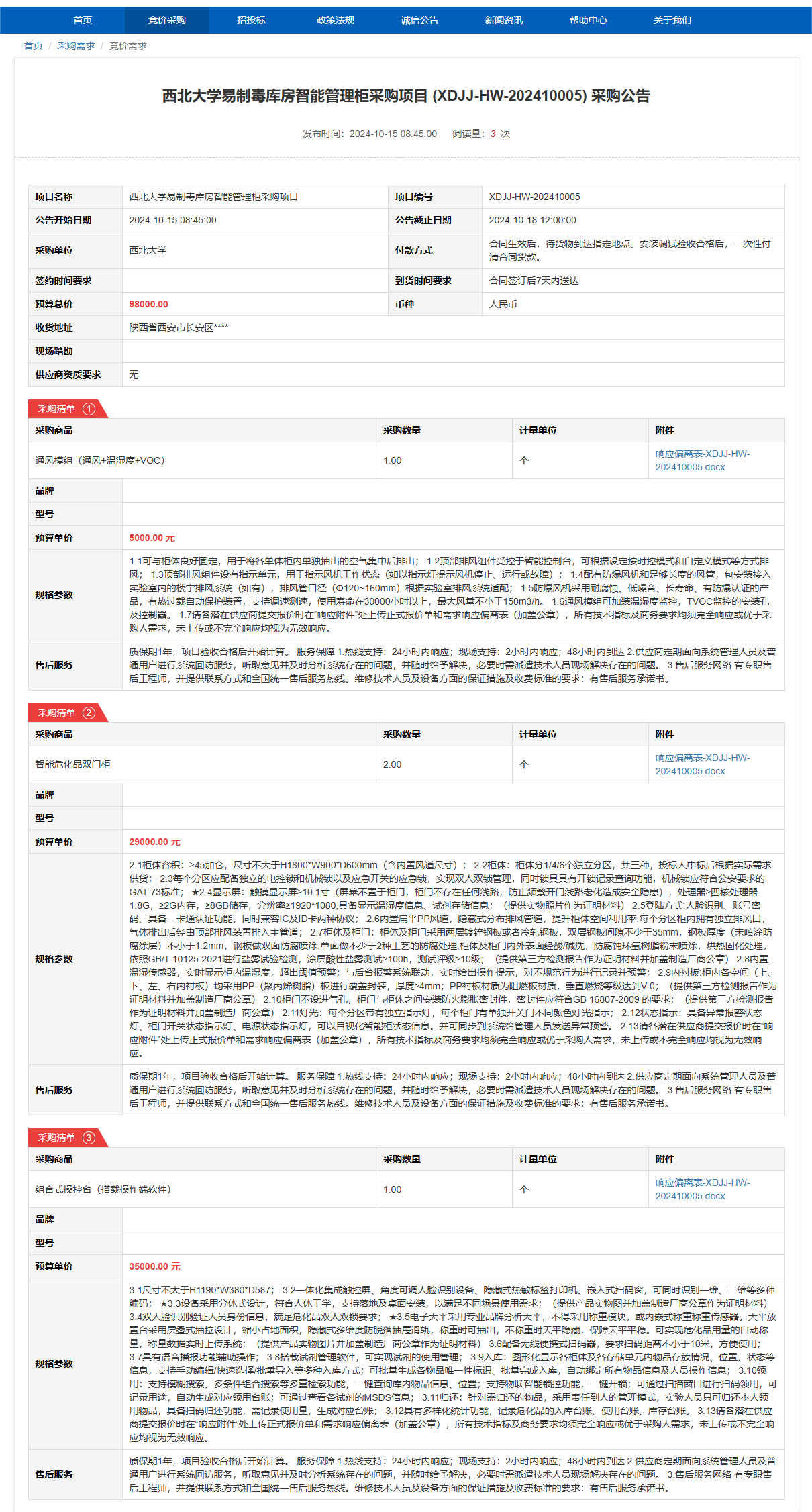 开云手机网页版登录入口易制毒库房智能管理柜采购项目(XDJJ-HW-202410005)竞价采购公告 作者:采购与招标办公室 编辑: 时间:2024-10-15 原公告链接:https://www.ejingcai.com.cn/site/bidding/detail/13297