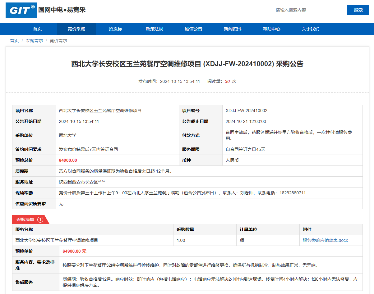 开云手机网页版登录入口长安校区玉兰苑餐厅空调维修项目(XDJJ-FW-202410002)竞价采购公告 作者:采购与招标办公室 编辑: 时间:2024-10-15 原公告链接:https://www.ejingcai.com.cn/site/bidding/detail/13316