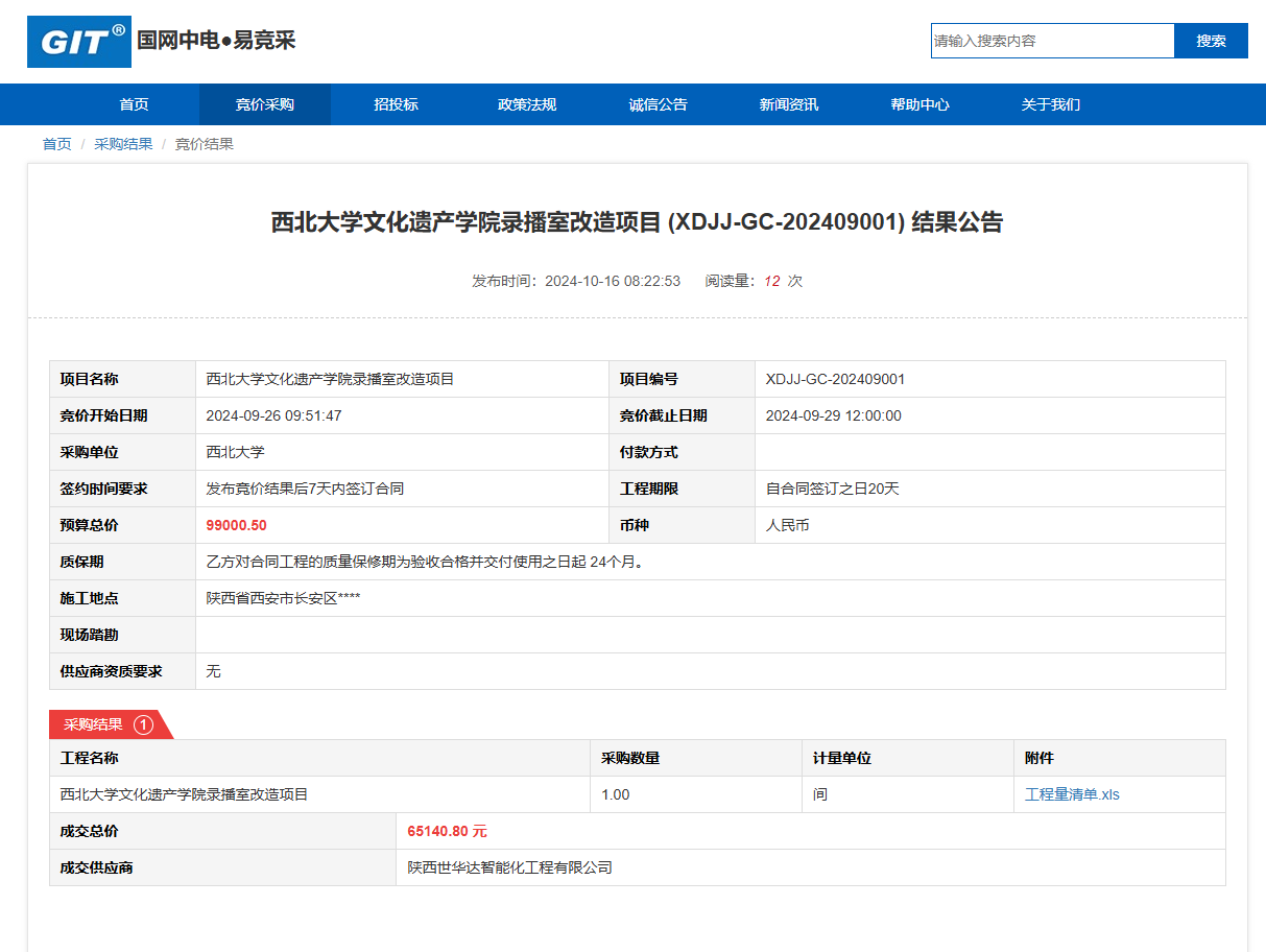 开云手机网页版登录入口文化遗产学院录播室改造项目(XDJJ-GC-202409001)竞价结果公告 作者:采购与招标办公室 编辑: 时间:2024-10-16 原公告链接:https://www.ejingcai.com.cn/site/bidding/detail/13343
