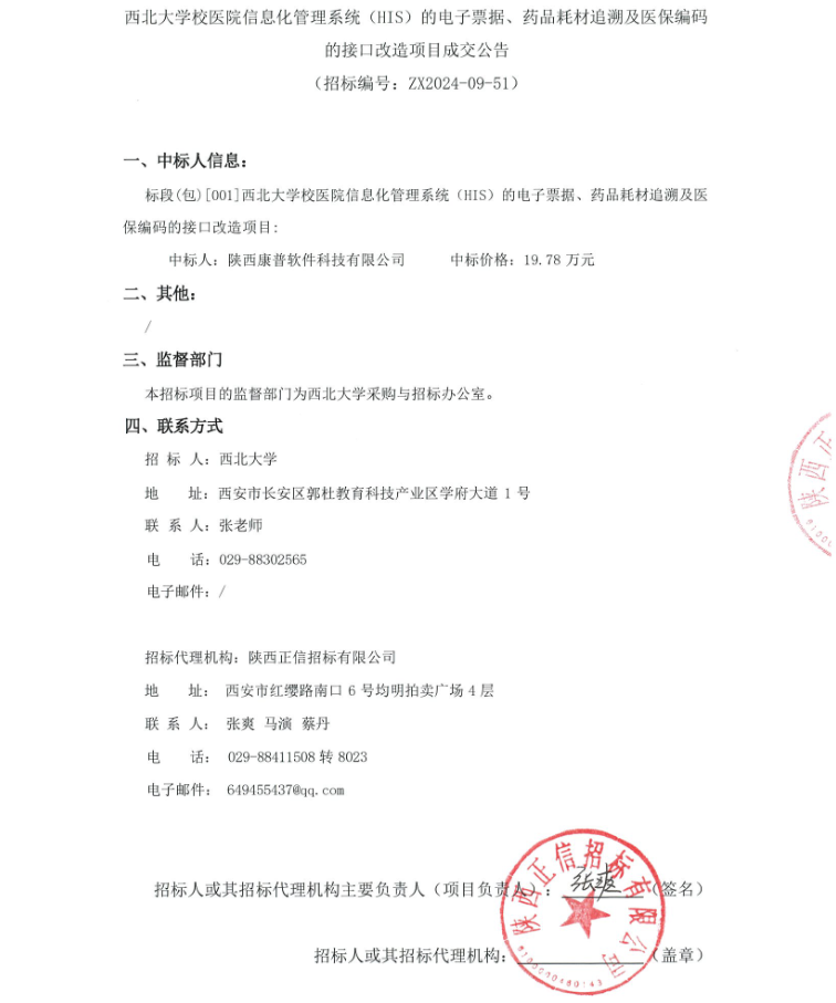 开云手机网页版登录入口校医院信息化管理系统(HIS)的电子票据、药品耗材追溯及医保编码的接口改造项目成交公告