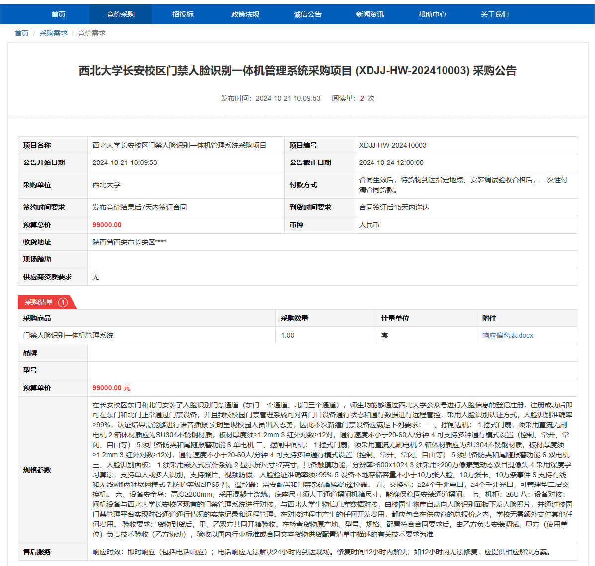 开云手机网页版登录入口长安校区门禁人脸识别一体机管理系统采购项目(XDJJ-HW-202410003)竞价采购公告 作者:采购与招标办公室 编辑: 时间:2024-10-21 原公告链接:https://www.ejingcai.com.cn/site/bidding/detail/13531
