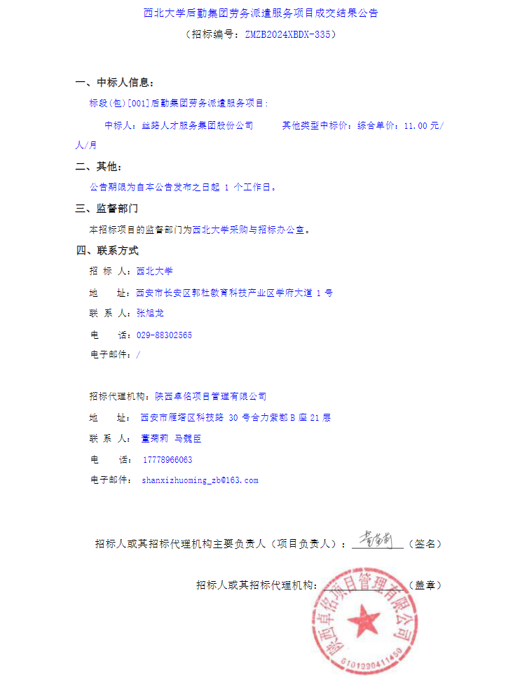开云手机网页版登录入口后勤集团劳务派遣服务项目成交结果公告