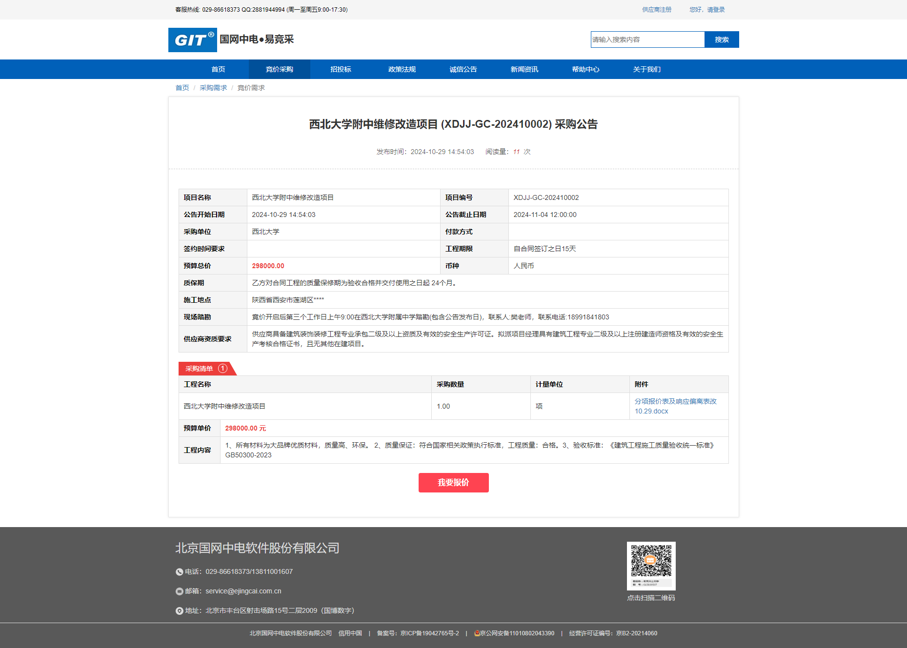 开云手机网页版登录入口附中维修改造项目 (XDJJ-GC-202410002) 采购公告