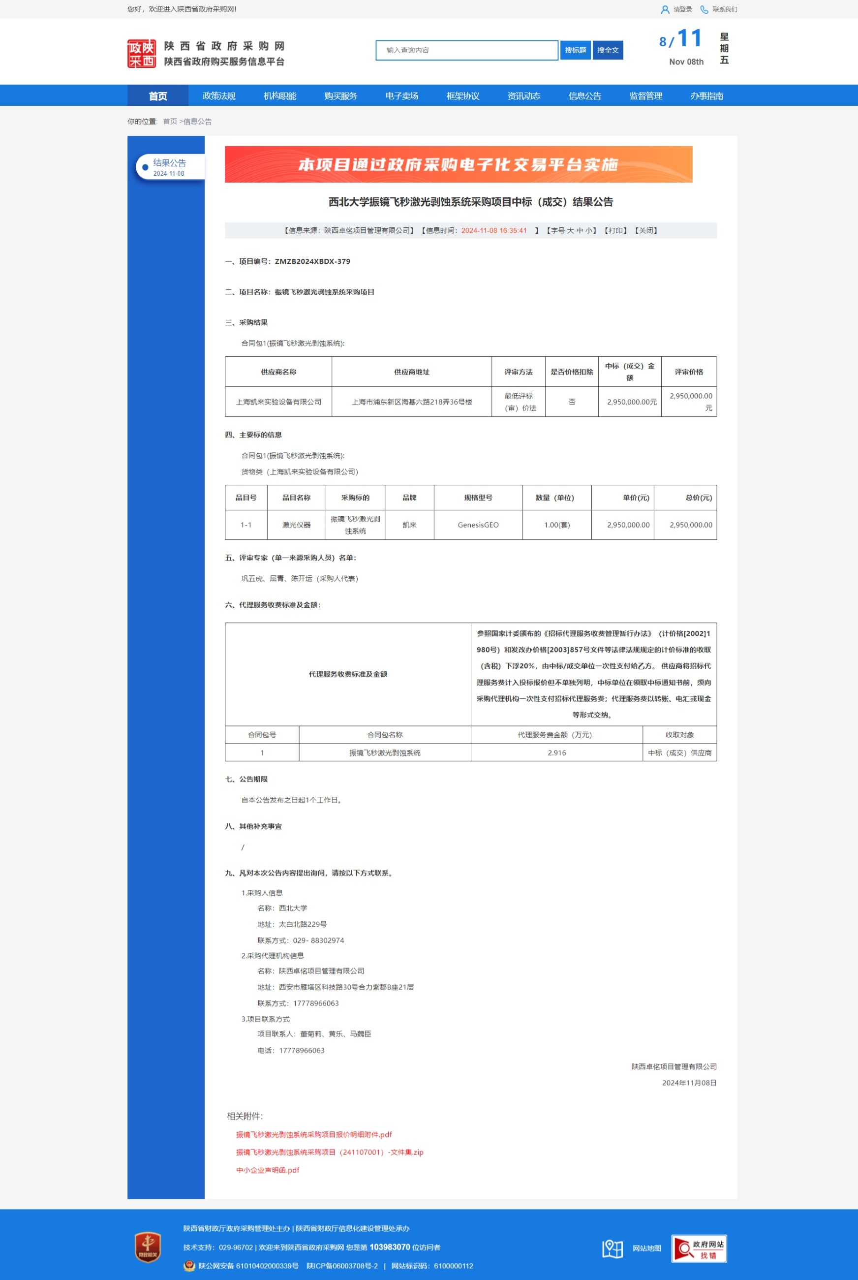 开云手机网页版登录入口振镜飞秒激光剥蚀系统采购项目中标(成交)结果公告 作者: 编辑:采购与招标办公室 时间:2024-11-08 原公告链接:https://www.ccgp-shaanxi.gov.cn/freecms/site/shaanxi/ggxx/info/2024/8a69c95d921859f001930ad889f25d3c.html?noticeType=001025¬iceId=fea4603f-9dad-11ef-8063-08c0eb20c666