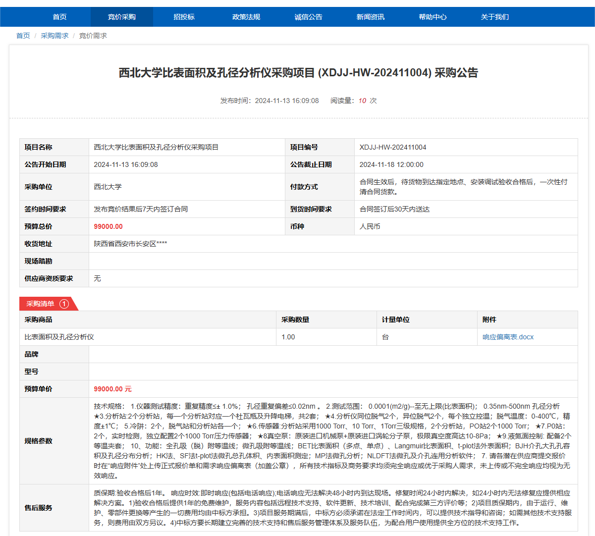 开云手机网页版登录入口比表面积及孔径分析仪采购项目(XDJJ-HW-202411004)竞价采购公告 作者:采购与招标办公室 编辑: 时间:2024-11-13 原公告链接:https://www.ejingcai.com.cn/site/bidding/detail/14819