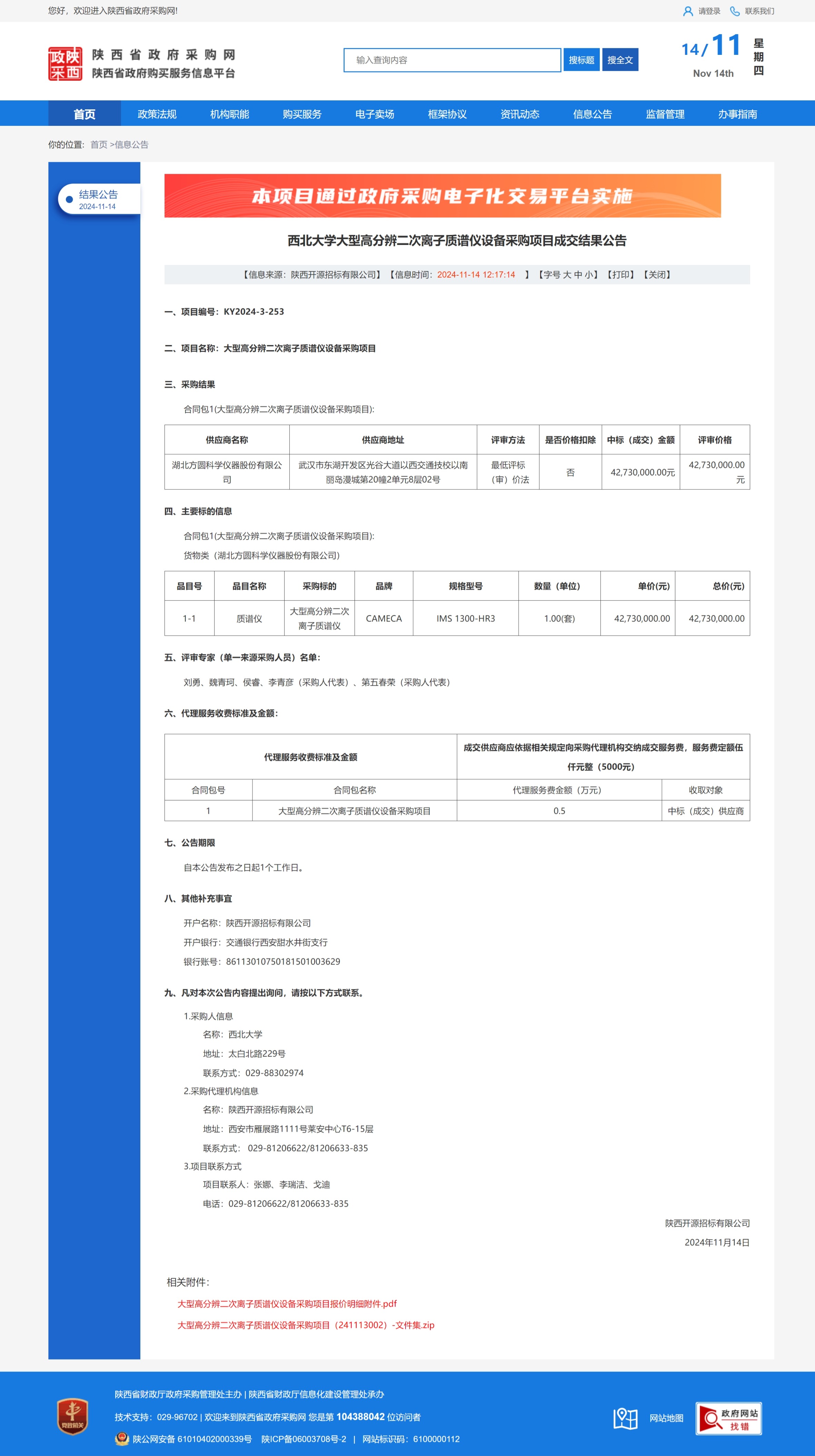 开云手机网页版登录入口大型高分辨二次离子质谱仪设备采购项目成交结果公告 作者: 编辑:薛利娟 时间:2024-11-14 原公告链接:https://www.ccgp-shaanxi.gov.cn/freecms/site/shaanxi/ggxx/info/2024/8a69c5a59218576d019328dcd1526537.html?noticeType=001025¬iceId=e4e285ed-a240-11ef-8063-08c0eb20c666