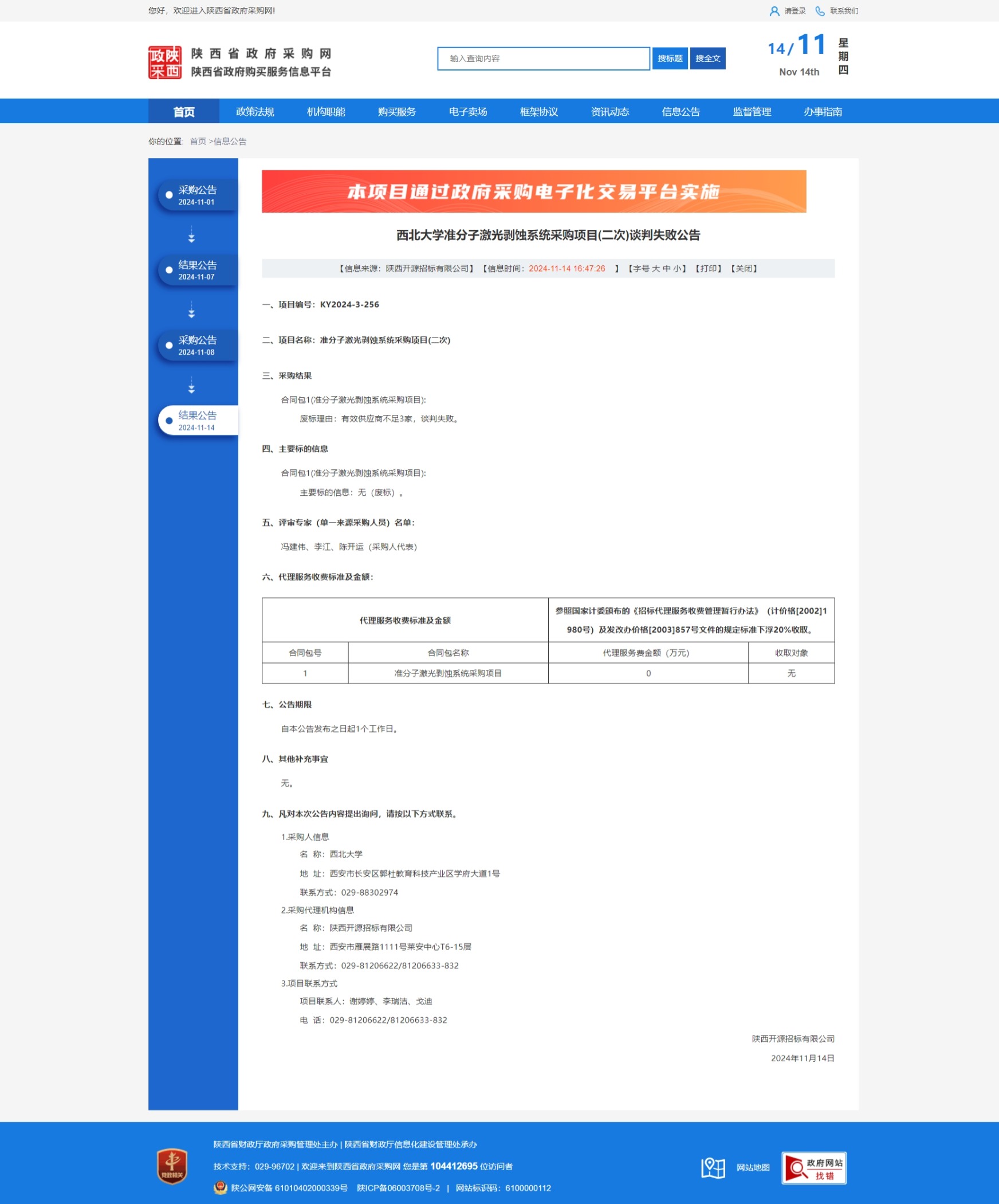 开云手机网页版登录入口准分子激光剥蚀系统采购项目(二次)谈判失败公告 作者: 编辑:薛利娟 时间:2024-11-14 原公告链接:https://www.ccgp-shaanxi.gov.cn/freecms/site/shaanxi/ggxx/info/2024/8a69c44e9218572b019329d196666b38.html?noticeType=001006¬iceId=a4a84f2c-a266-11ef-8063-08c0eb20c666