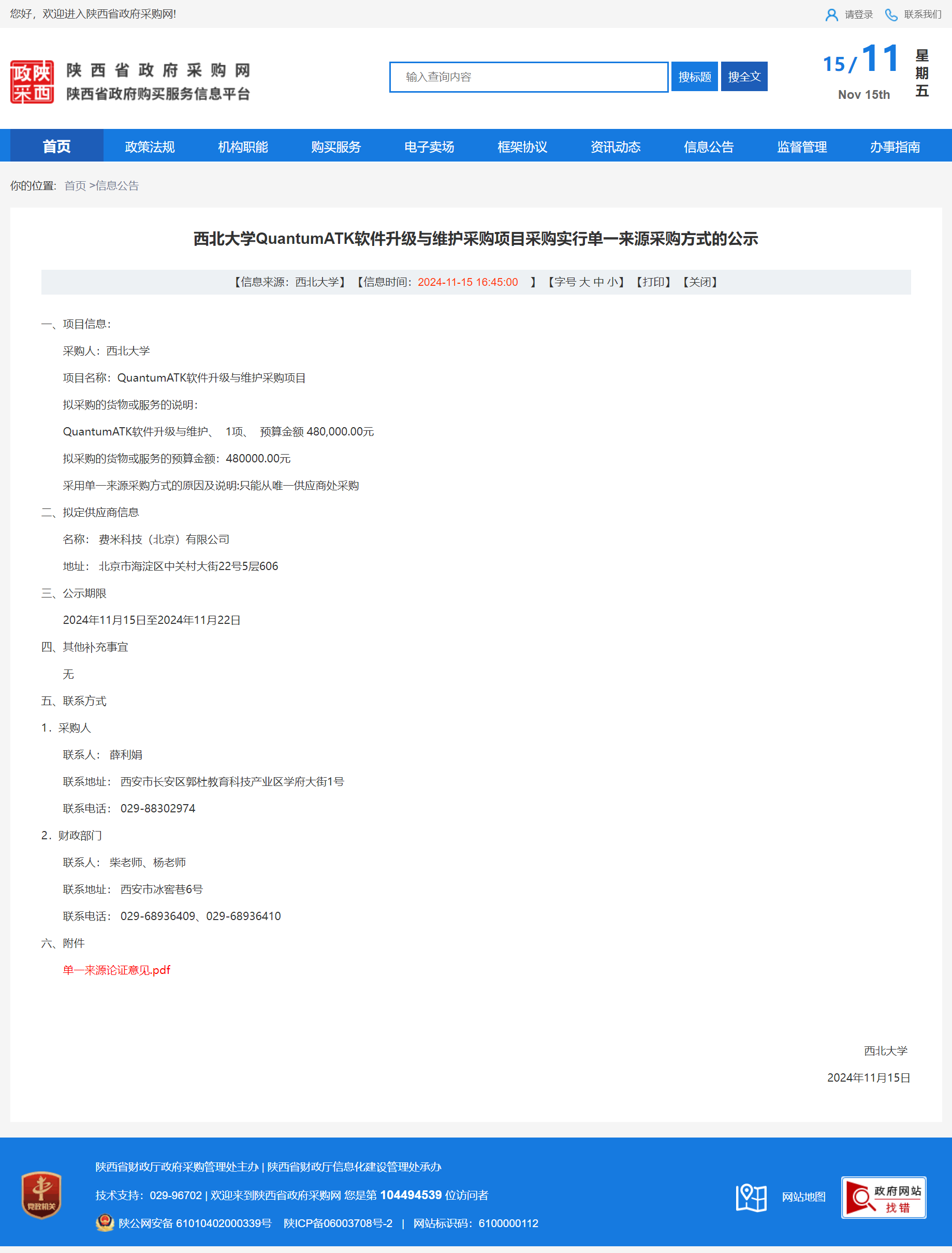 开云手机网页版登录入口QuantumATK软件升级与维护采购项目采购实行单一来源采购方式的公示