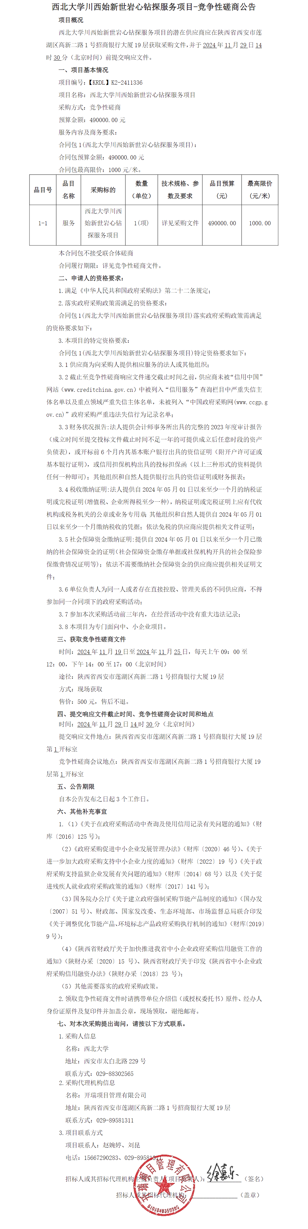 开云手机网页版登录入口川西始新世岩心钻探服务项目竞争性磋商公告