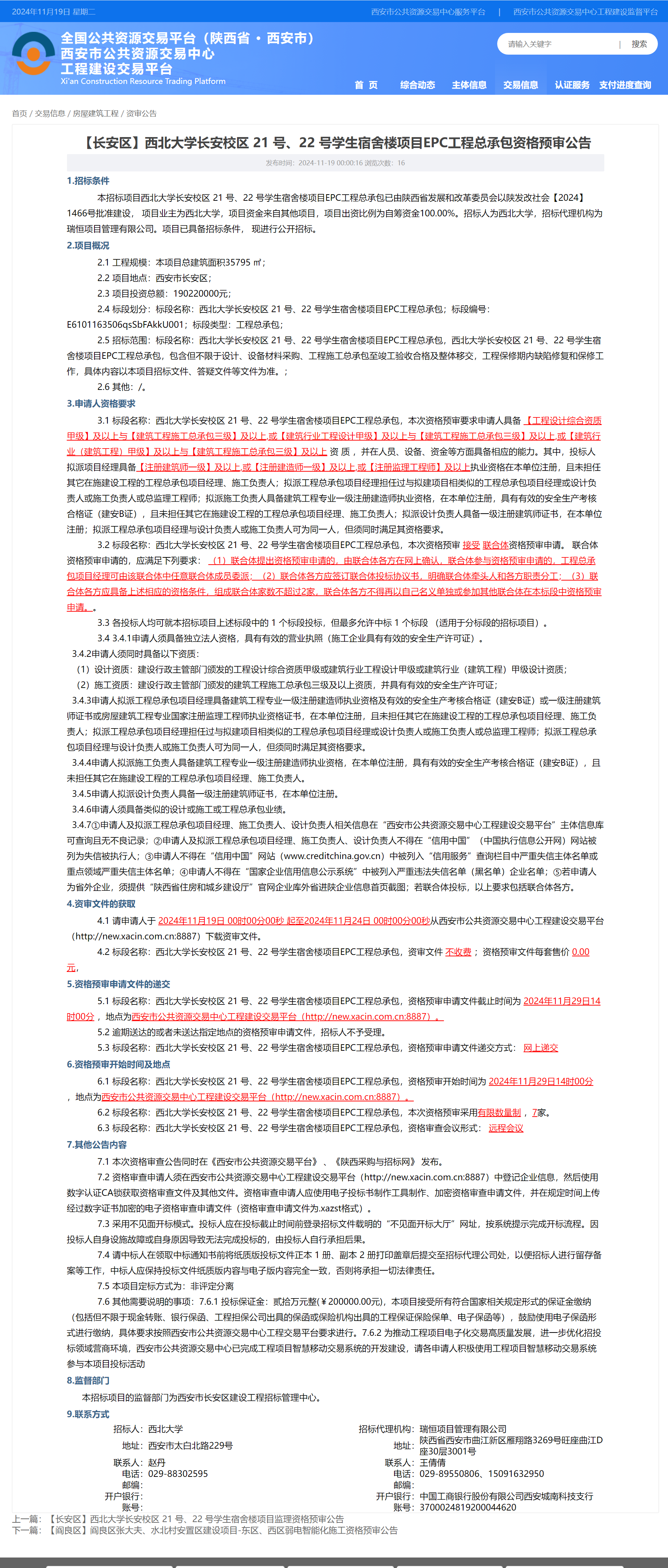 开云手机网页版登录入口长安校区21号、22号学生宿舍楼项目EPC工程总承包资格预审公告