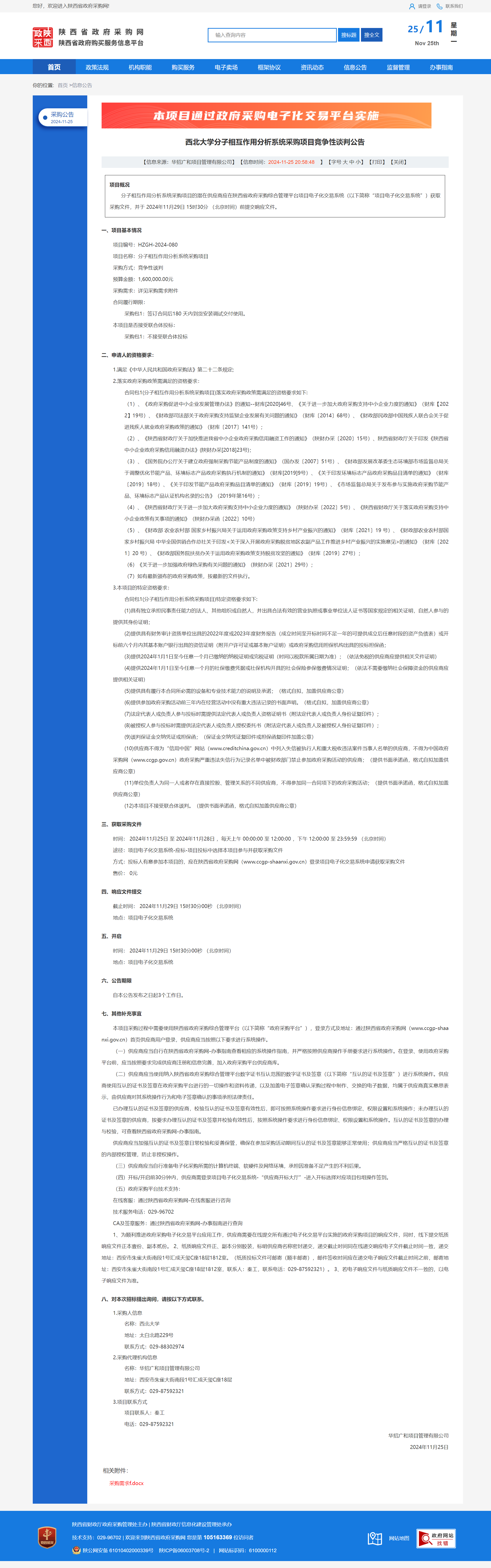 开云手机网页版登录入口分子相互作用分析系统采购项目竞争性谈判公告